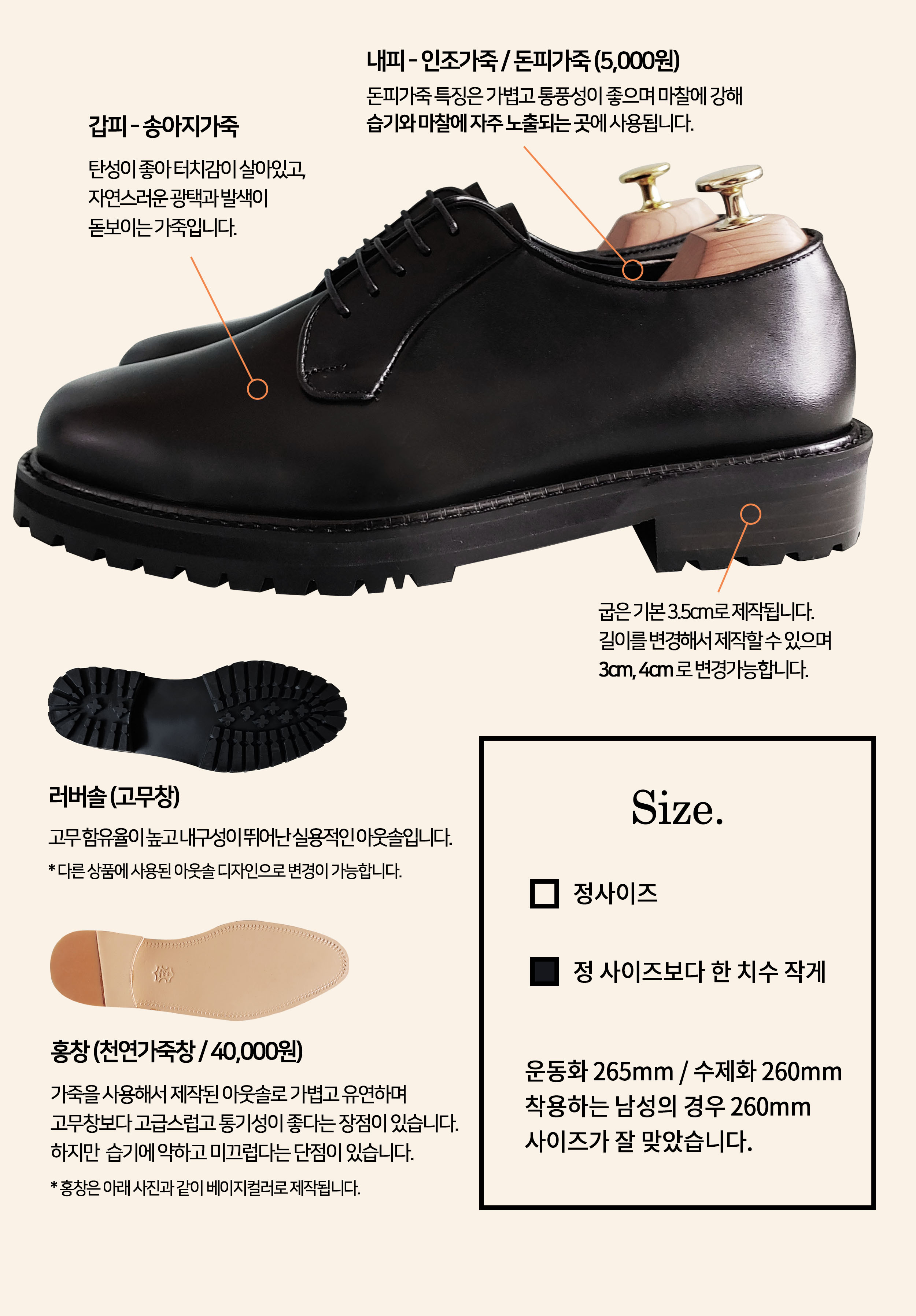 워커 더비슈즈 C148FL 블랙 송아지가죽 남성수제화