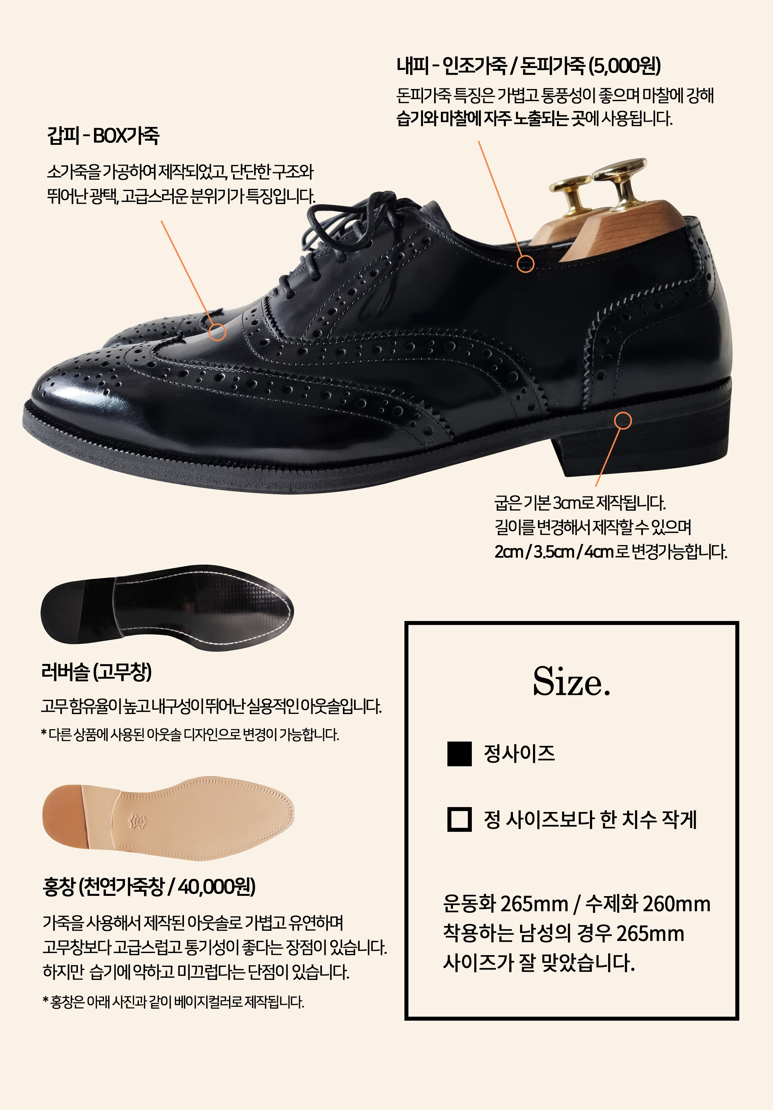 견고하면서 클래식한 분위기가 돋보이는 윙팁 슈즈.