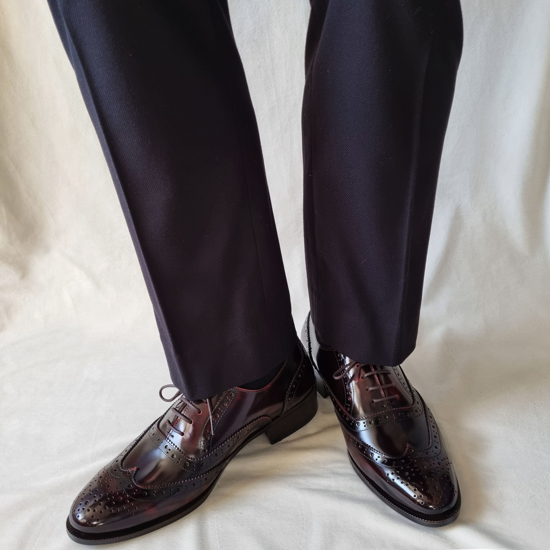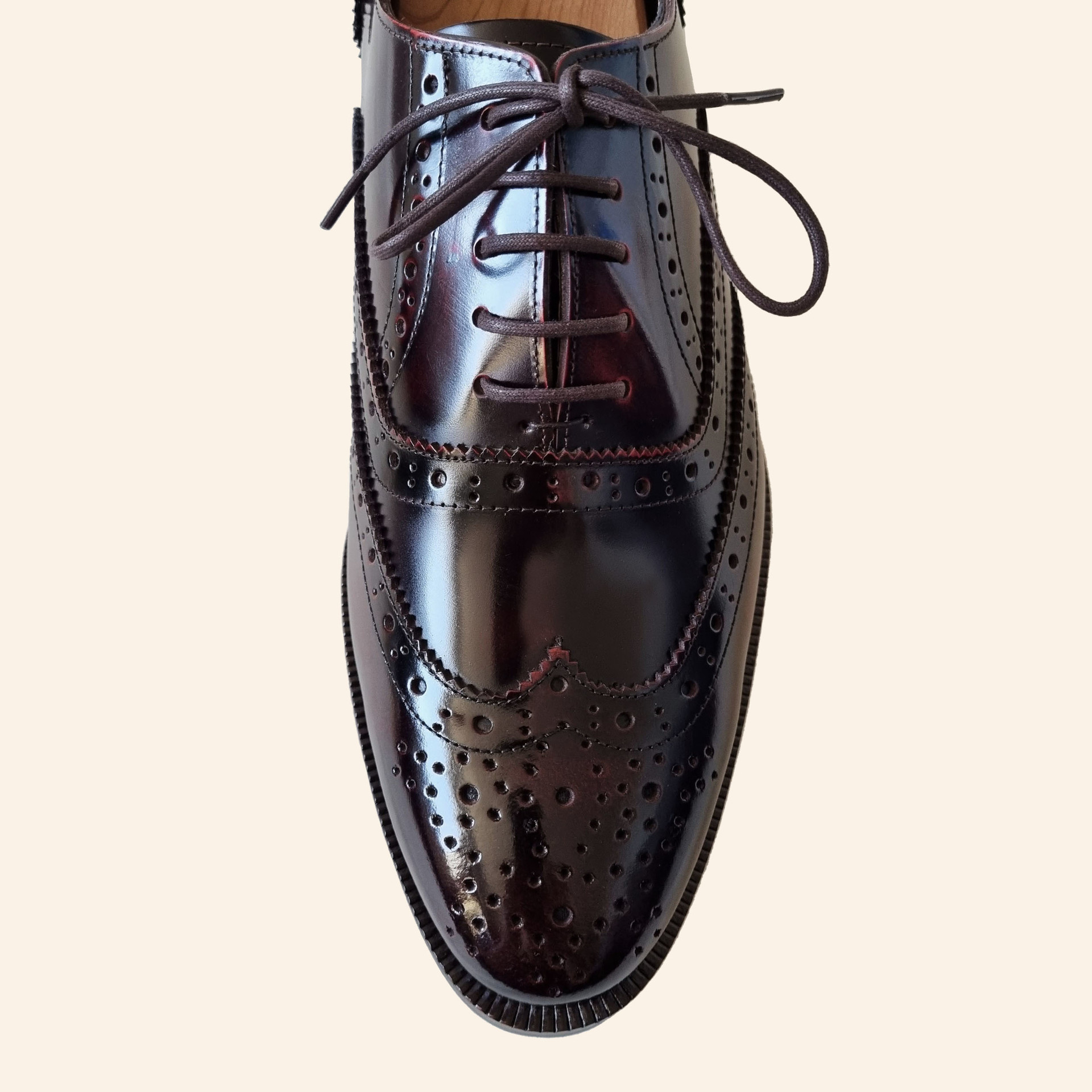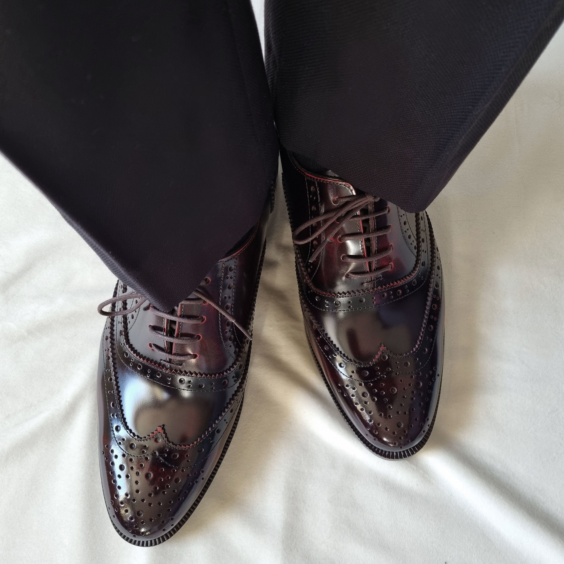 포멀 슬림 윙팁 옥스포드 슈즈 C75FL 와인 소가죽 남성수제화