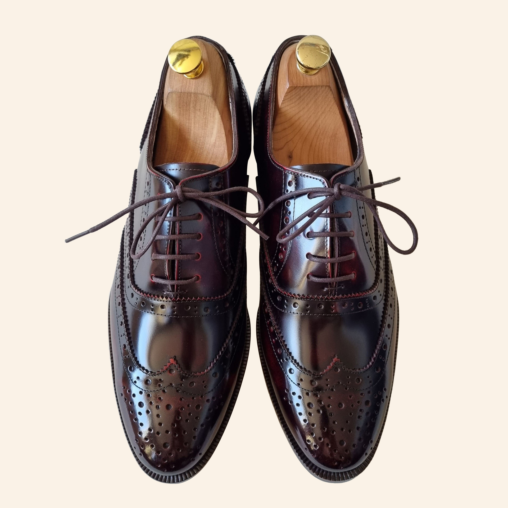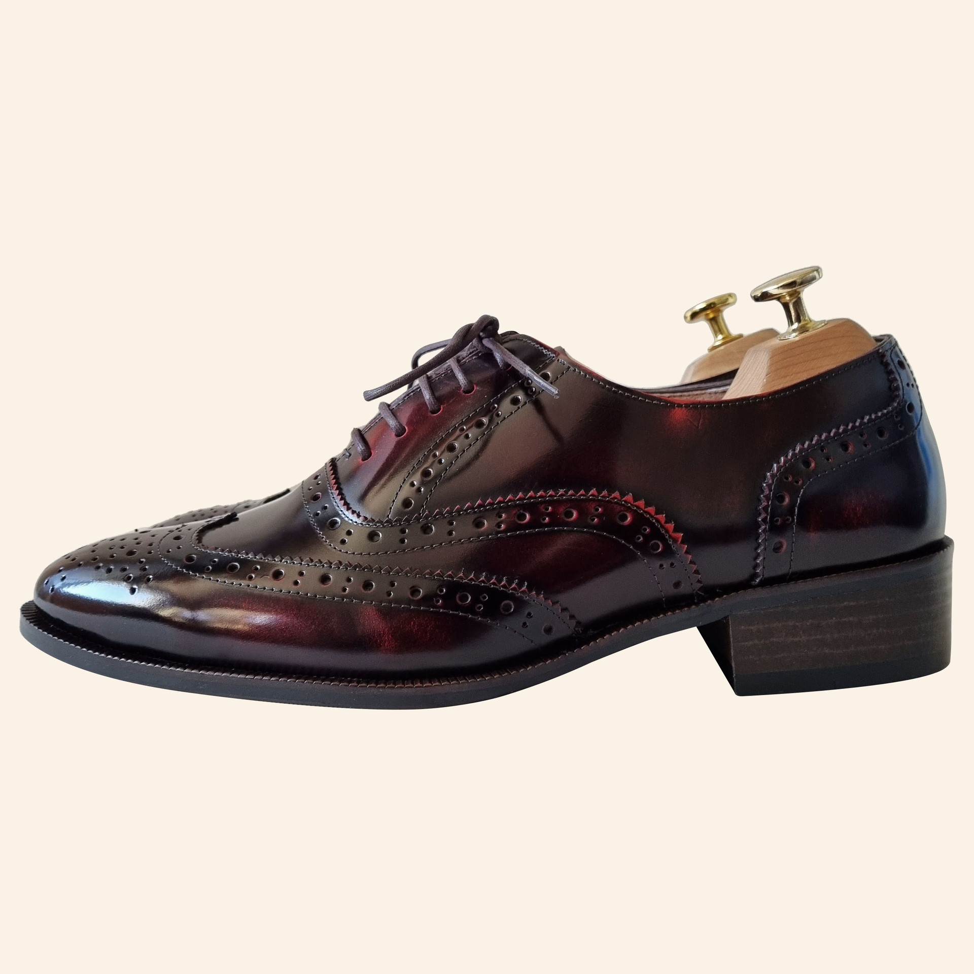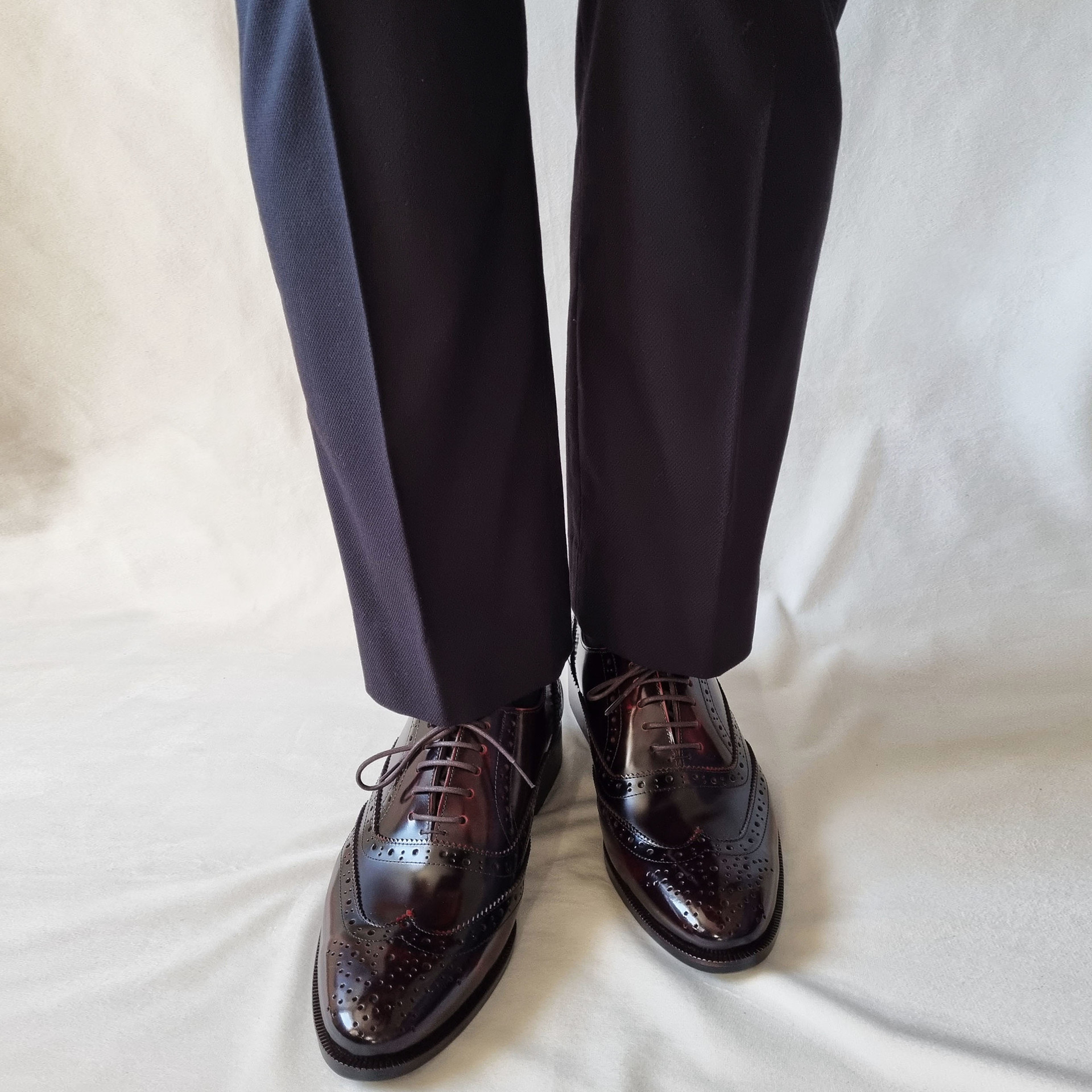포멀 슬림 윙팁 옥스포드 슈즈 C75FL 와인 소가죽 남성수제화