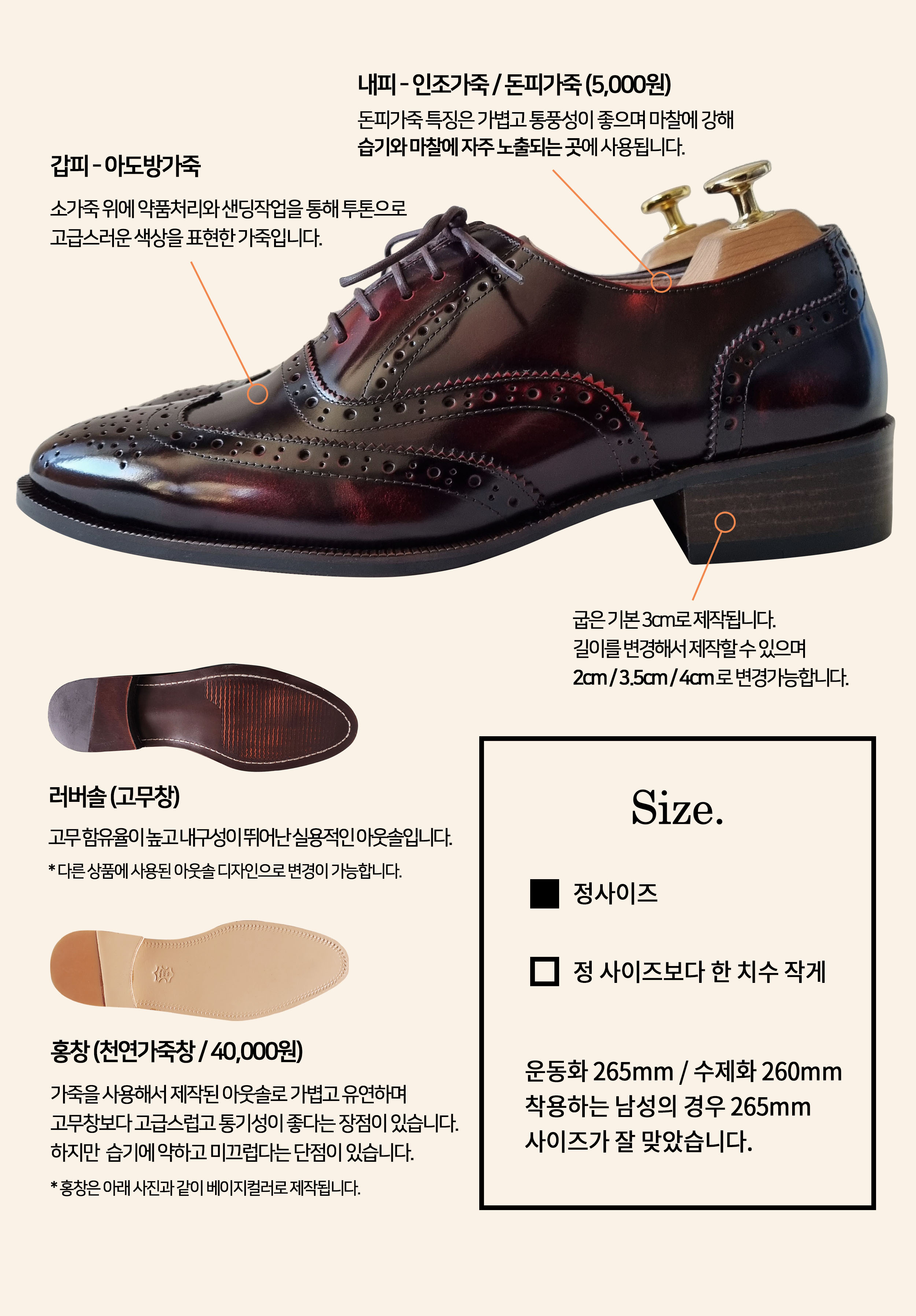 내피 - 인조가죽, 천연돈내피 (선택)