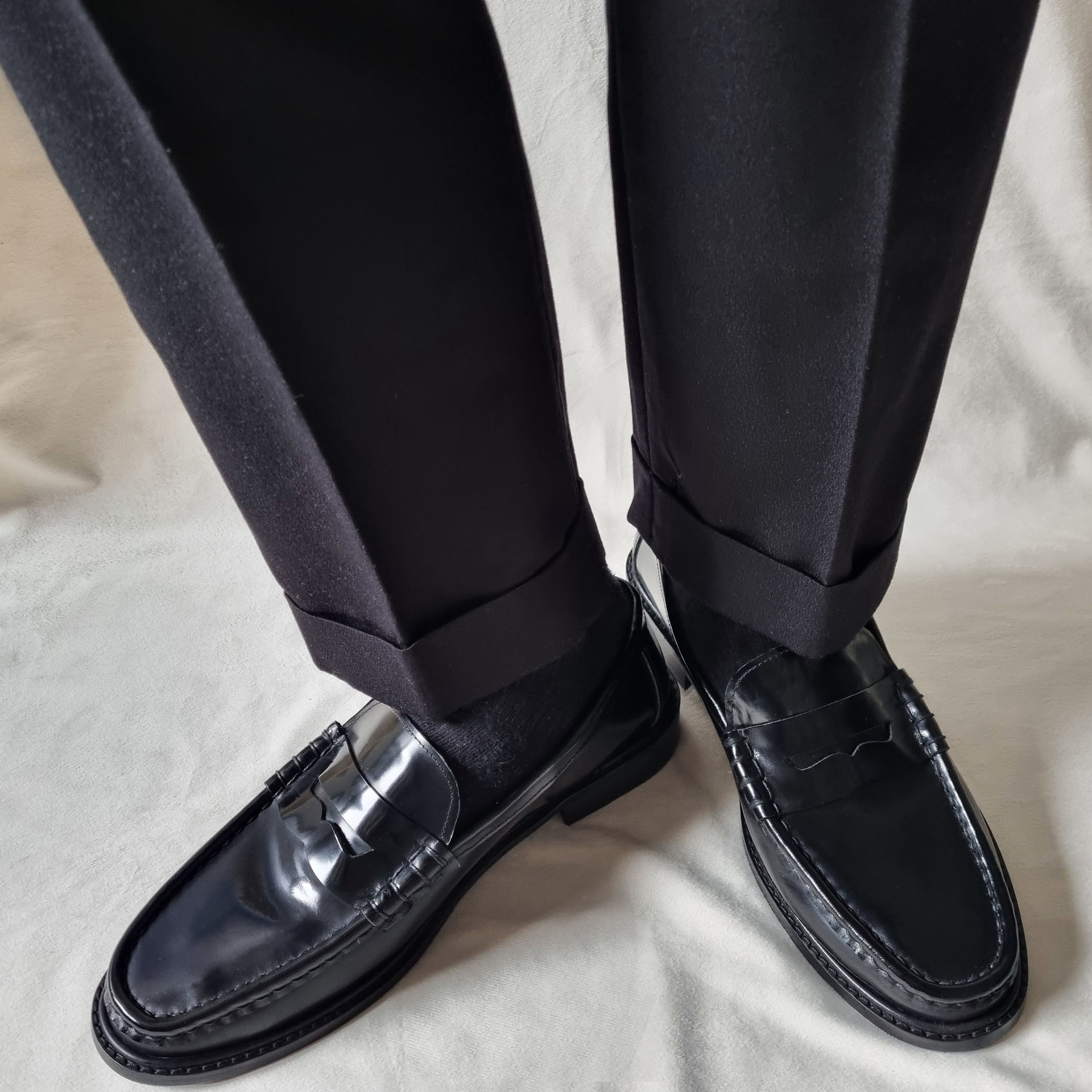 와이드 쉐입 페니로퍼 C60FL 블랙 소가죽 남성수제화