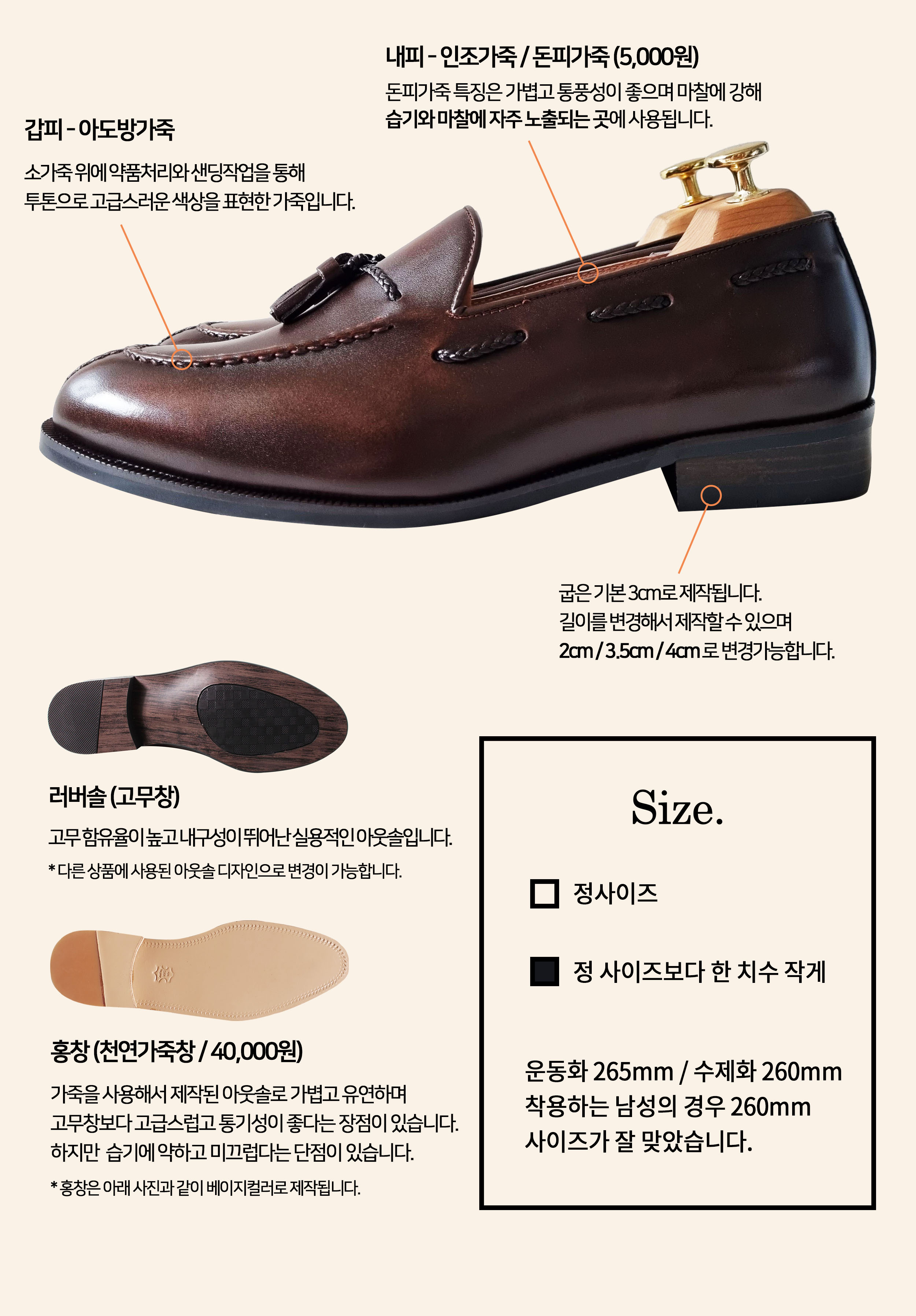 내피 - 인조가죽, 천연돈내피 (선택)
