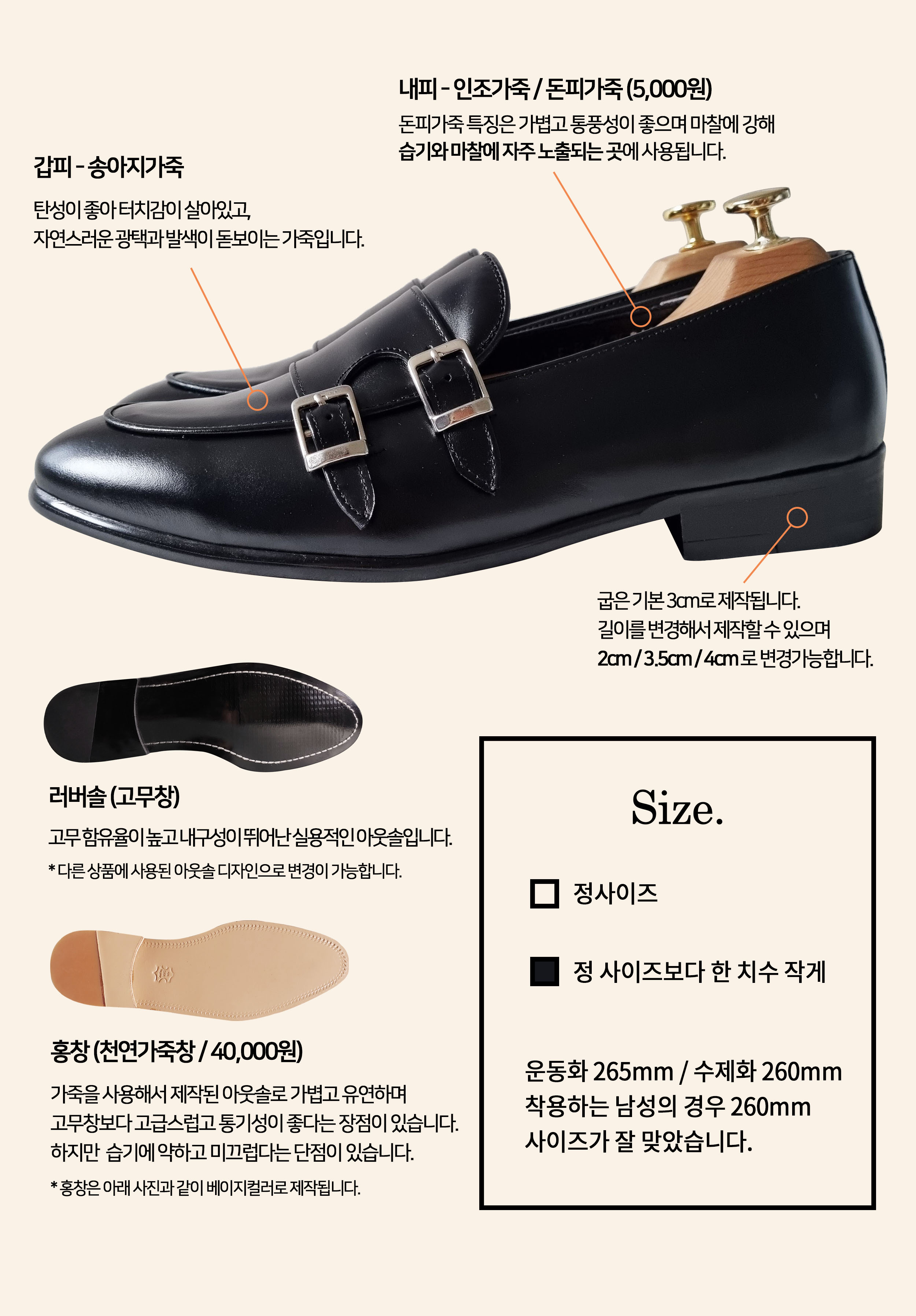 더블몽크스트랩 로퍼 C08FL 블랙 송아지가죽 남성수제화