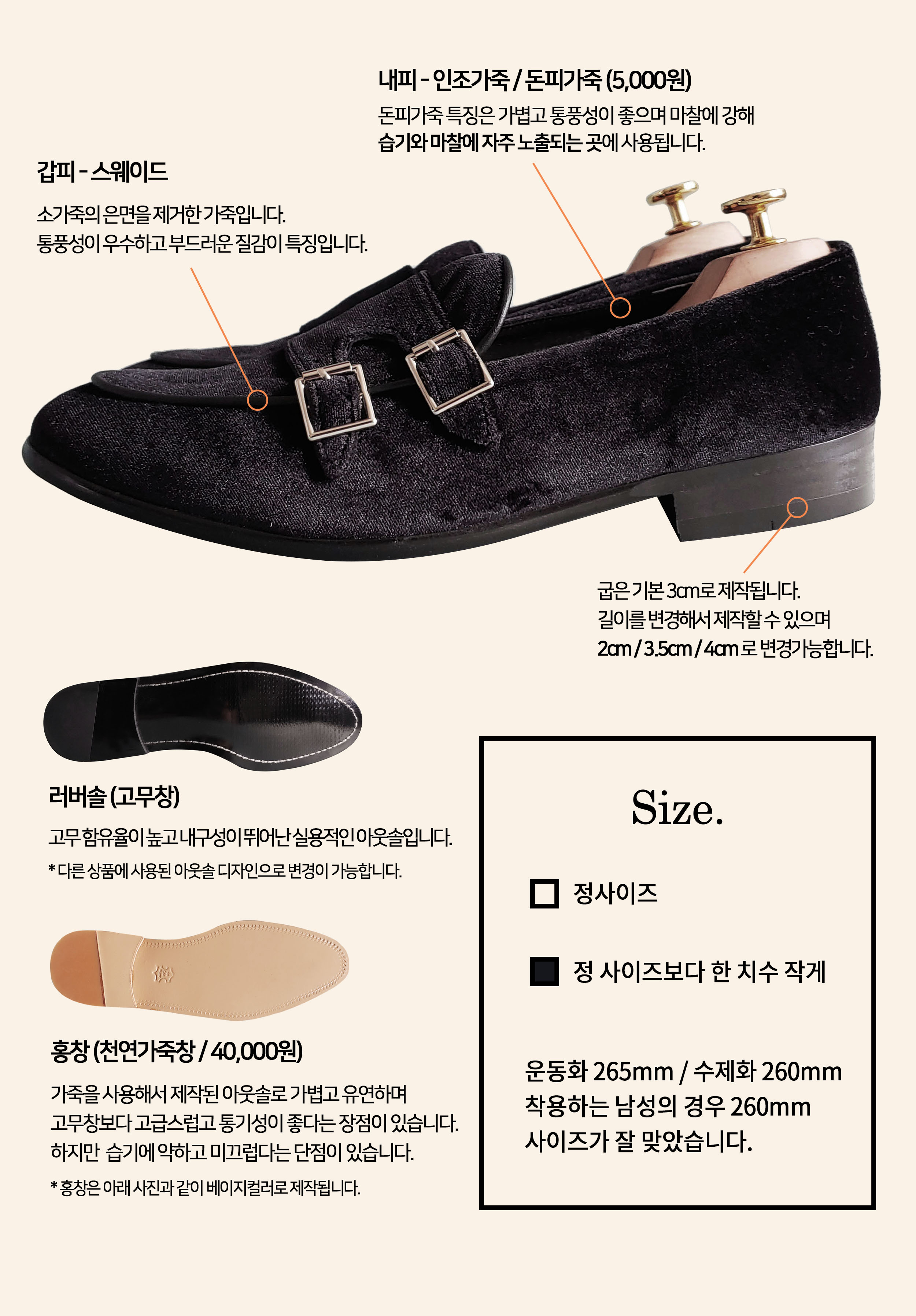 더블몽크스트랩 로퍼 C111FL 블랙 벨벳 남성수제화