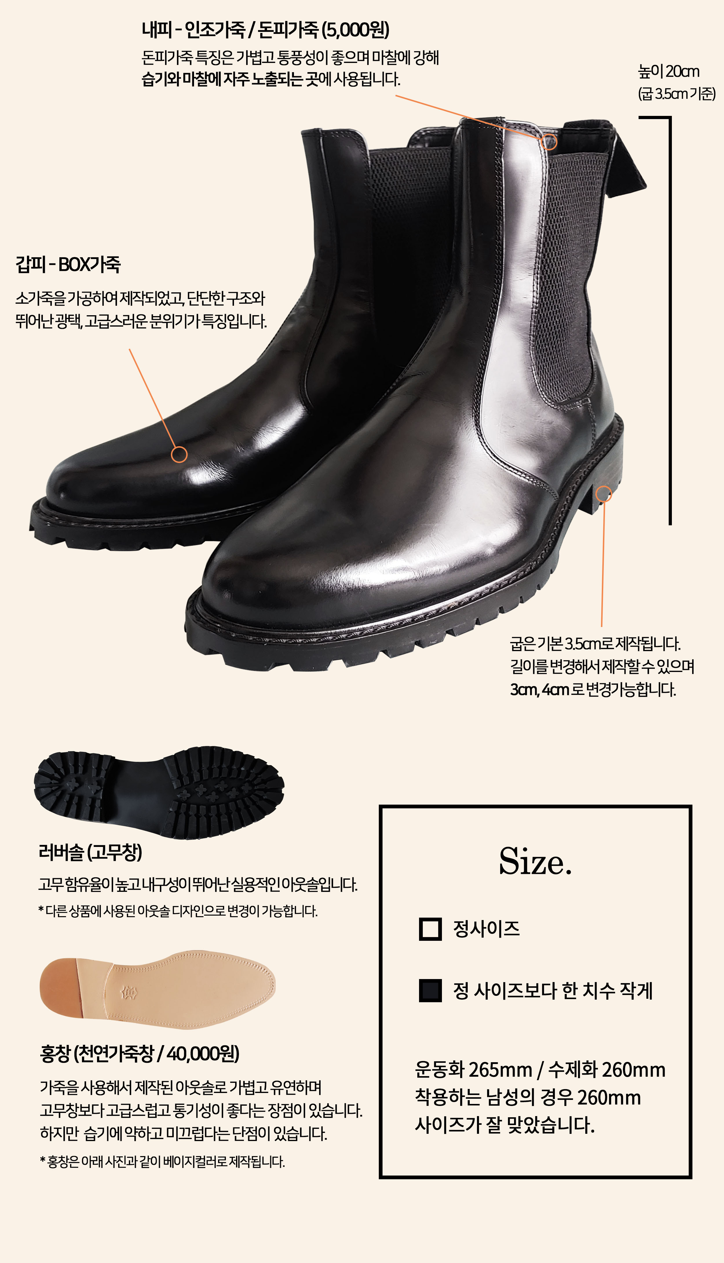 매력적인 색감과 견고한 창이 돋보이는 첼시부츠