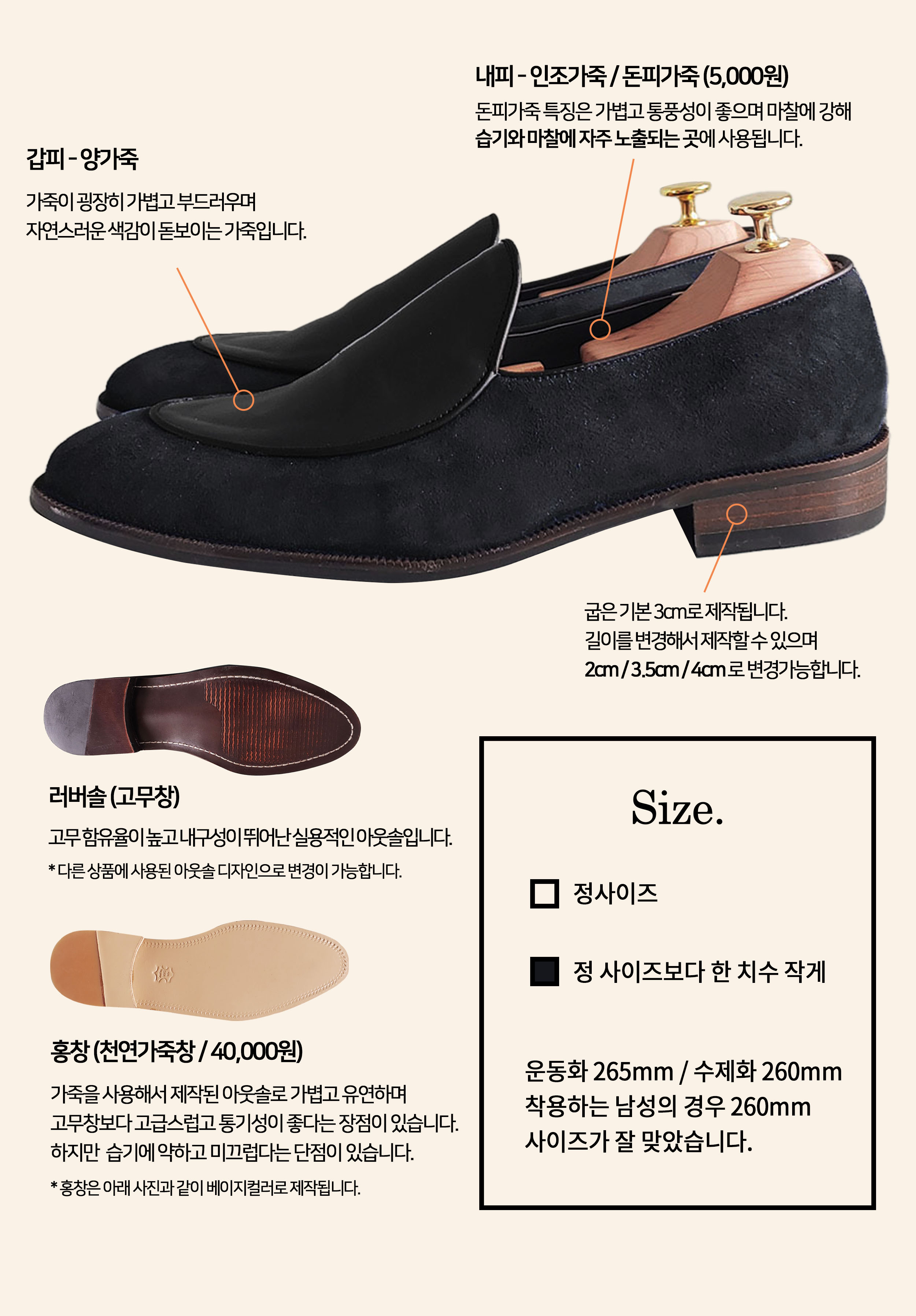 스웨이드 소재와 가죽을 함께 사용해서 제작한 클래식 로퍼