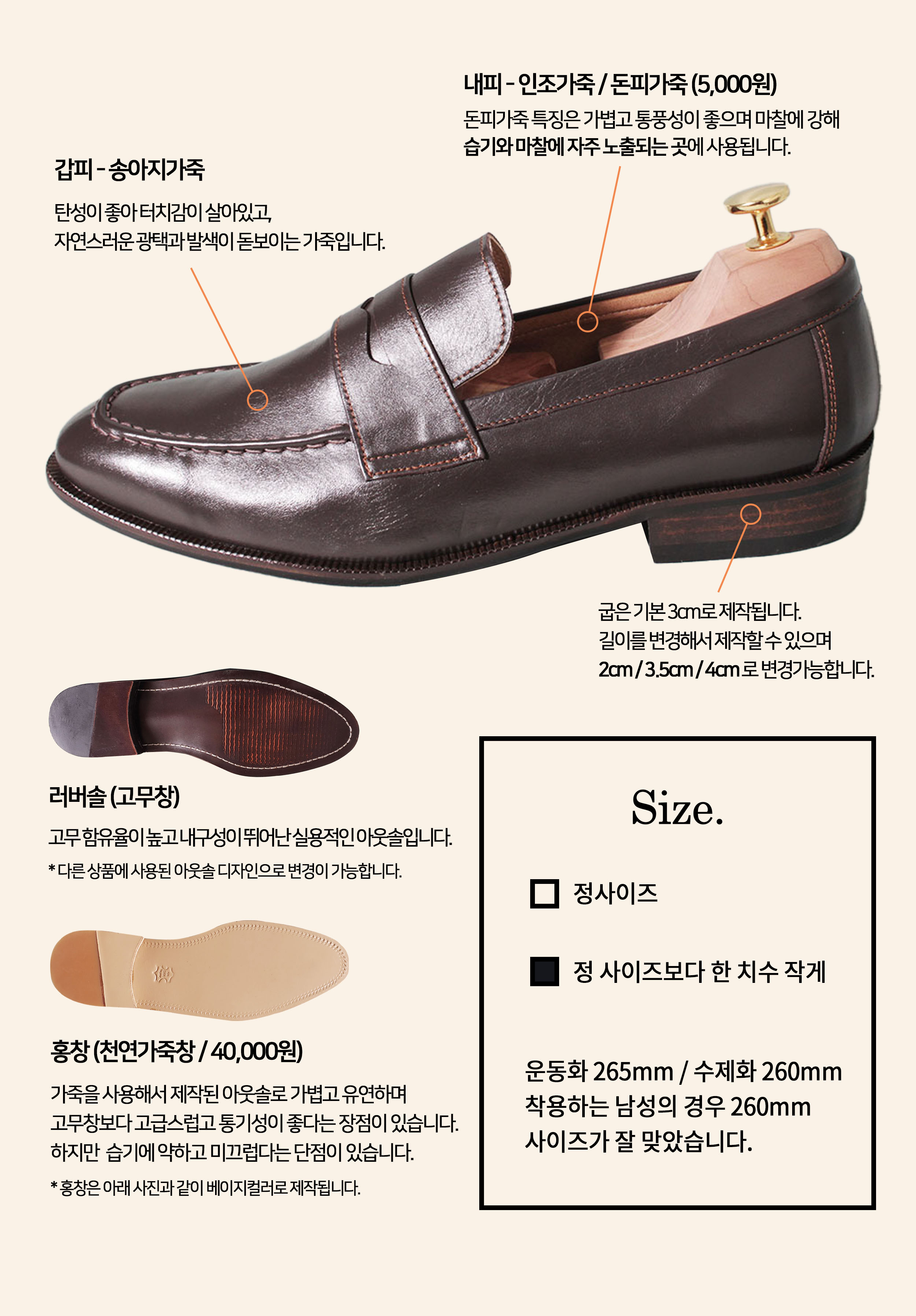 스퀘어 클래식 페니로퍼 C66FL 딥브라운 소가죽 남성수제화