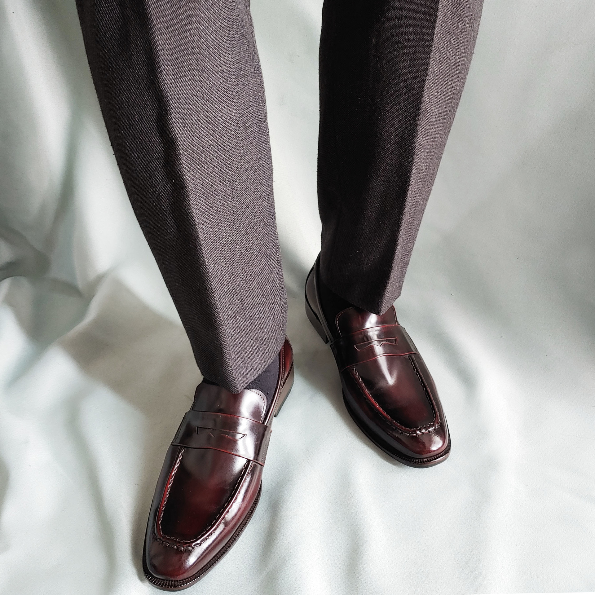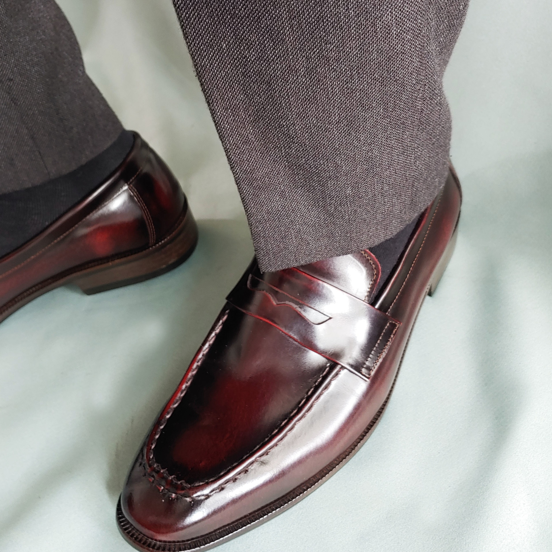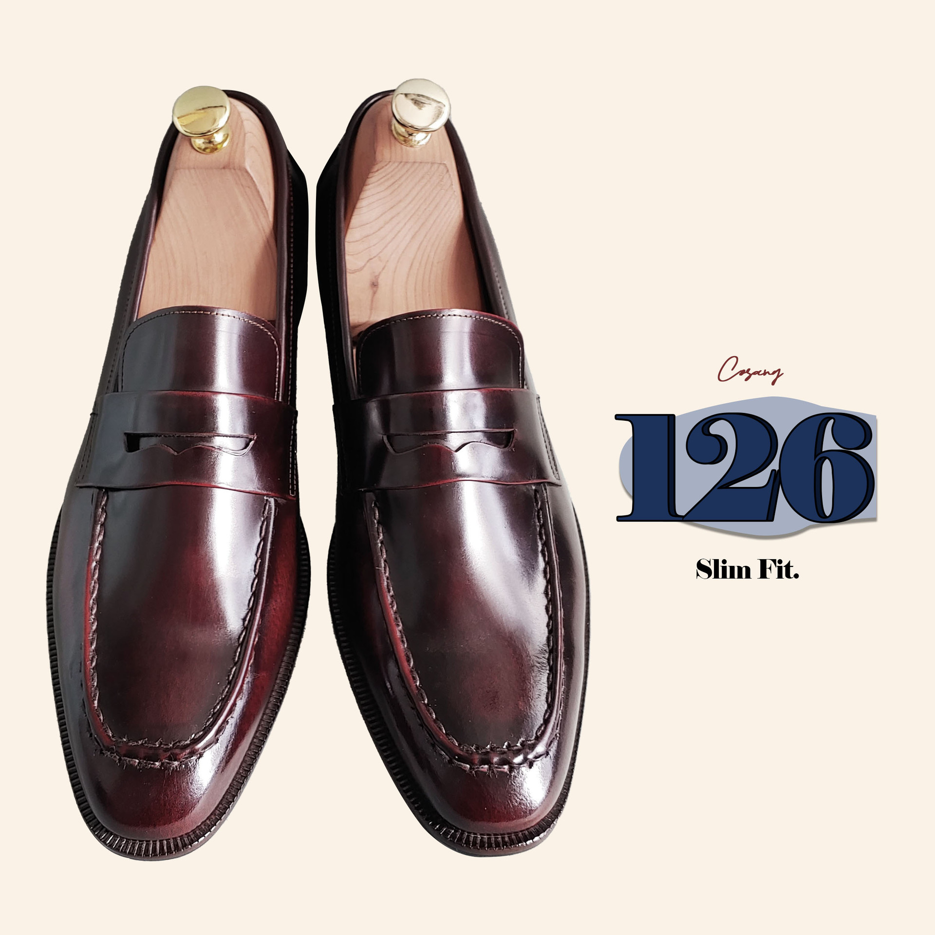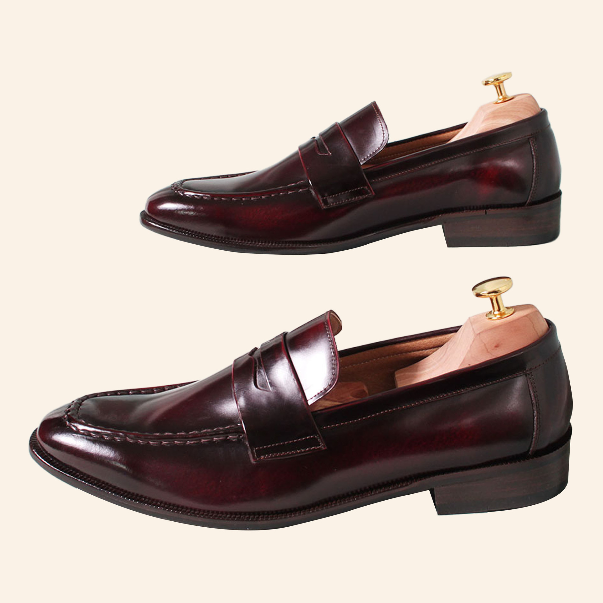 스퀘어 클래식 페니로퍼 C63FL 와인 소가죽 남성수제화