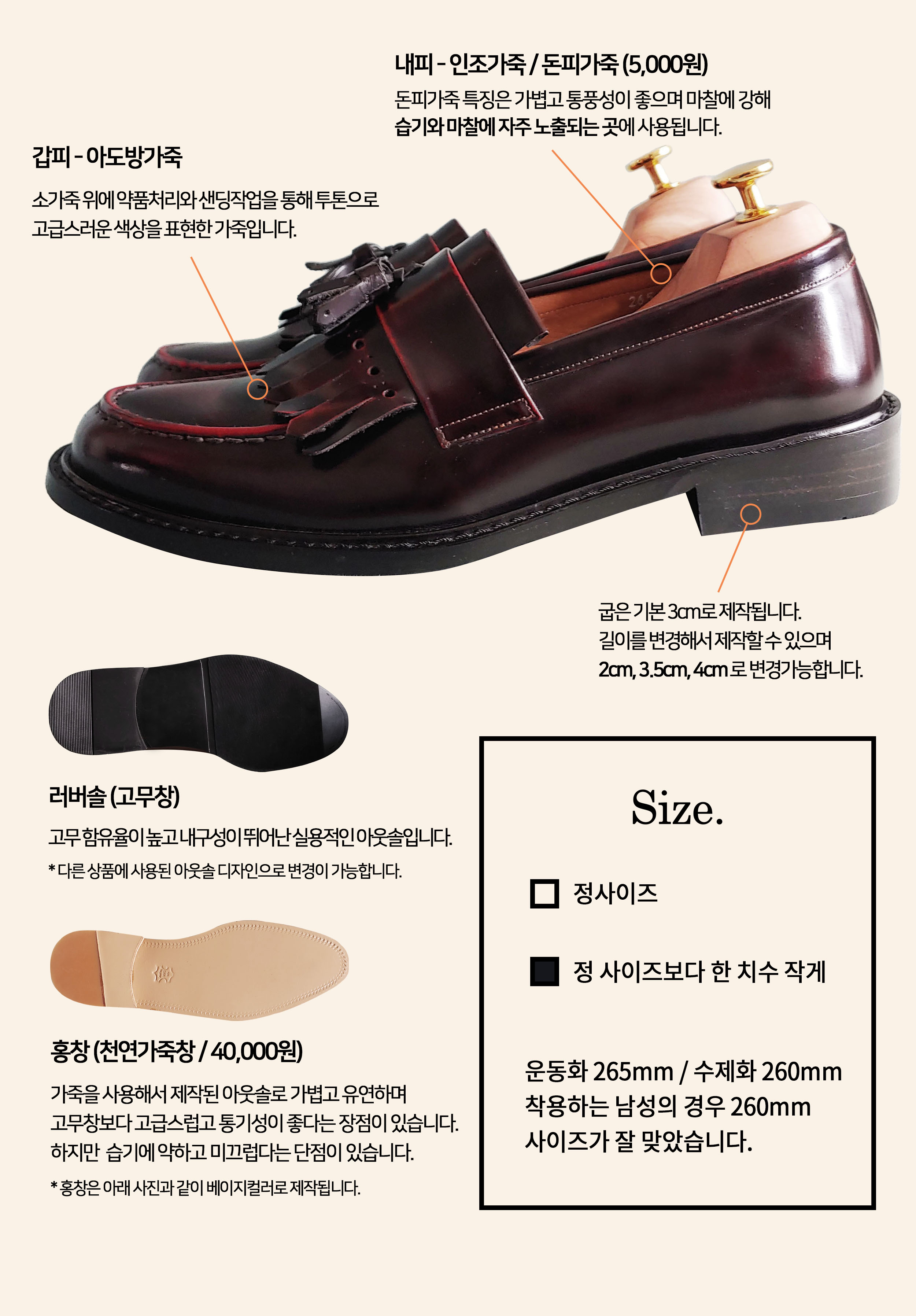 유팁 디테일 태슬로퍼 수제화 C109FL 와인 소가죽 남성수제화