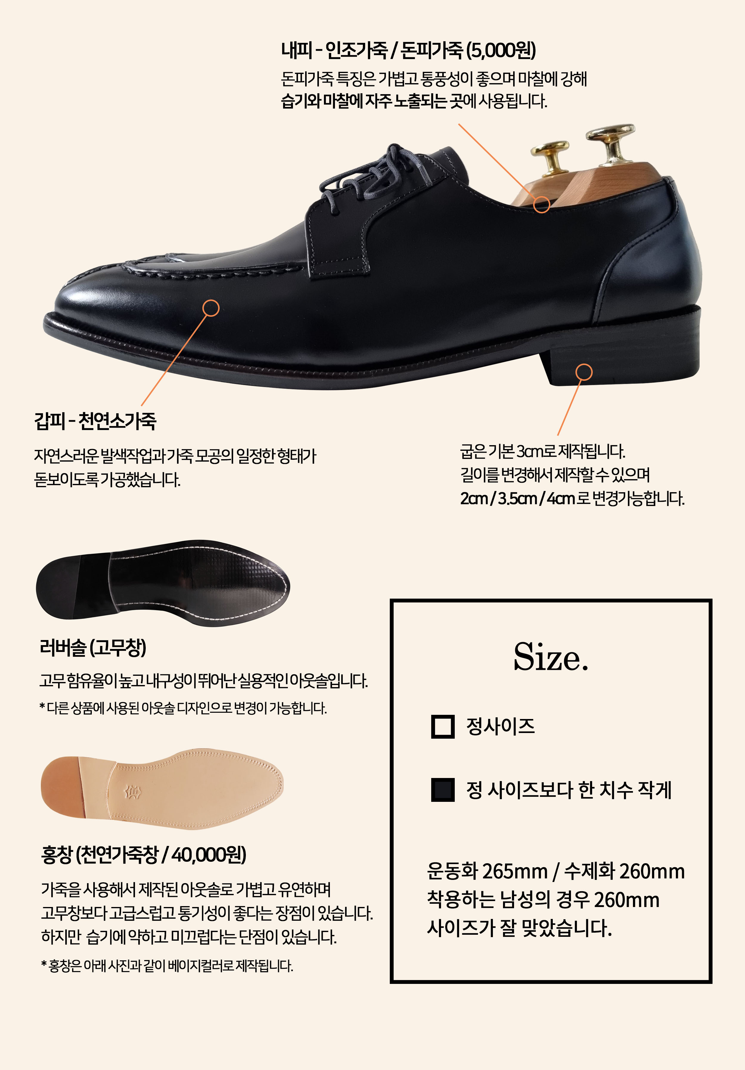 내피 - 인조가죽, 천연돈내피 (선택)