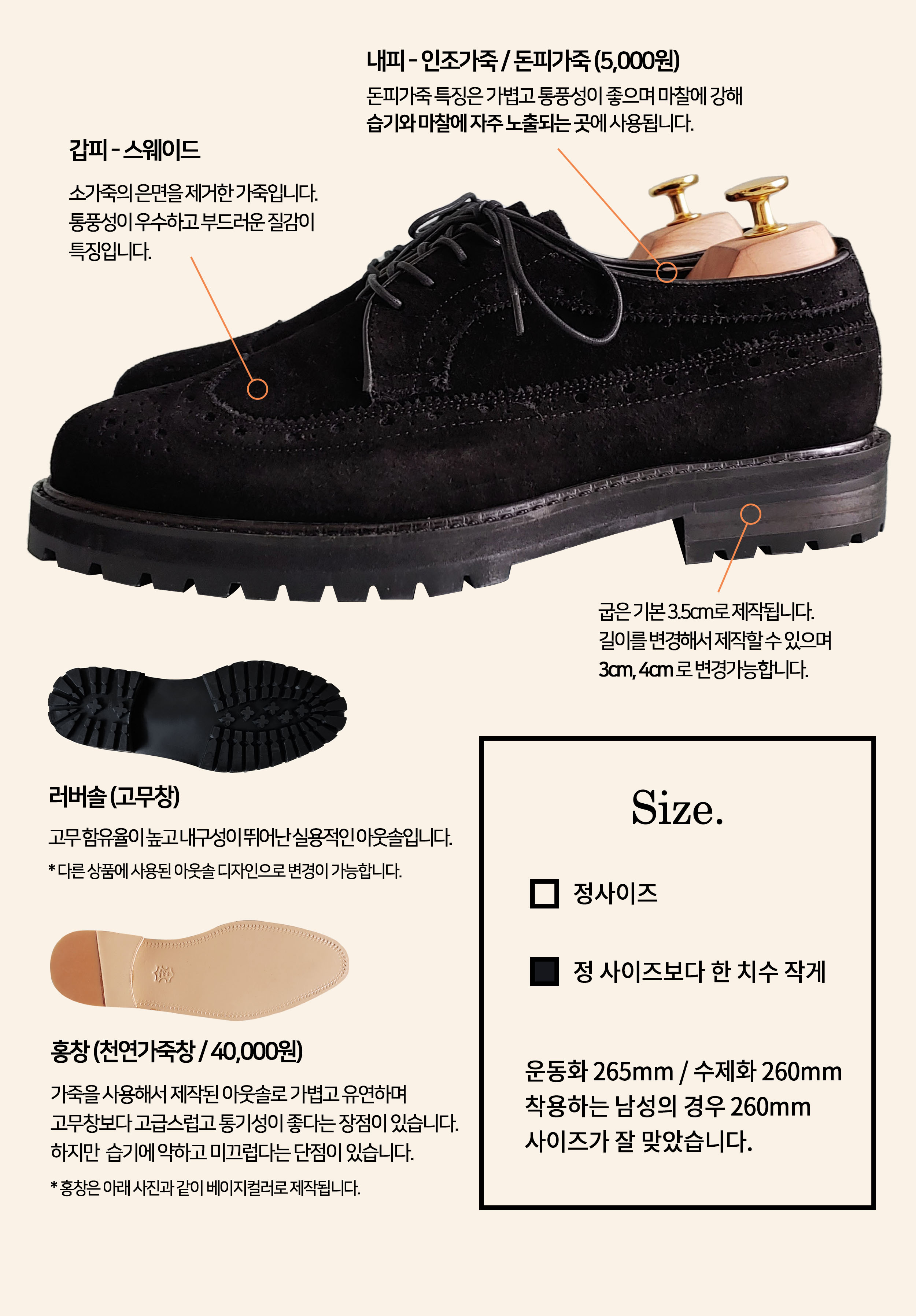 스웨이드 윙팁 더비슈즈 C209FL 블랙 소가죽 남성수제화