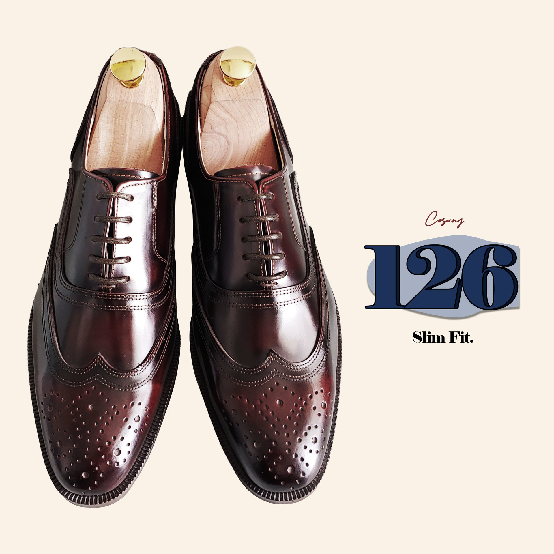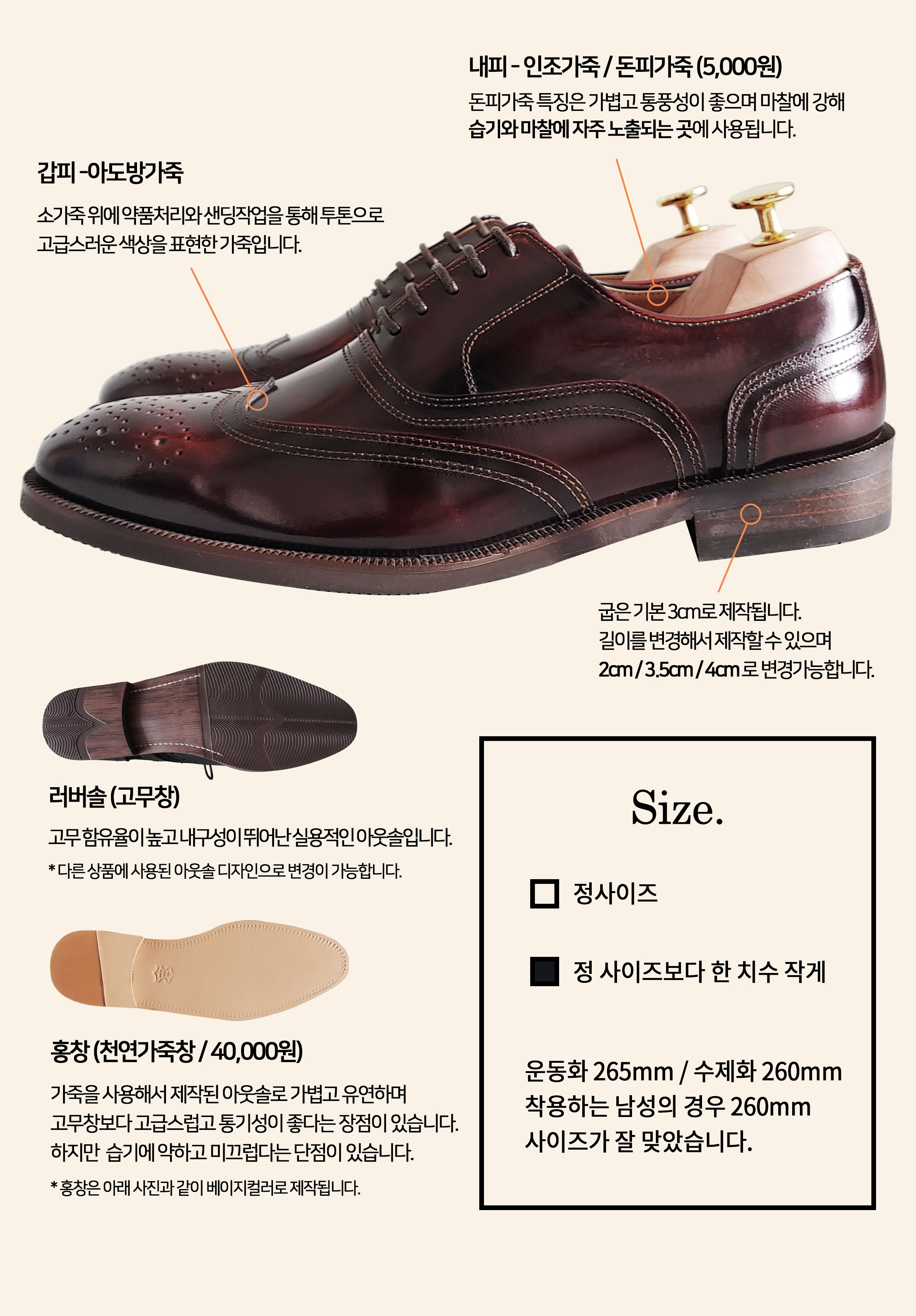 로르 윙팁 옥스포드 슈즈 C84FL 와인 소가죽 남성수제화