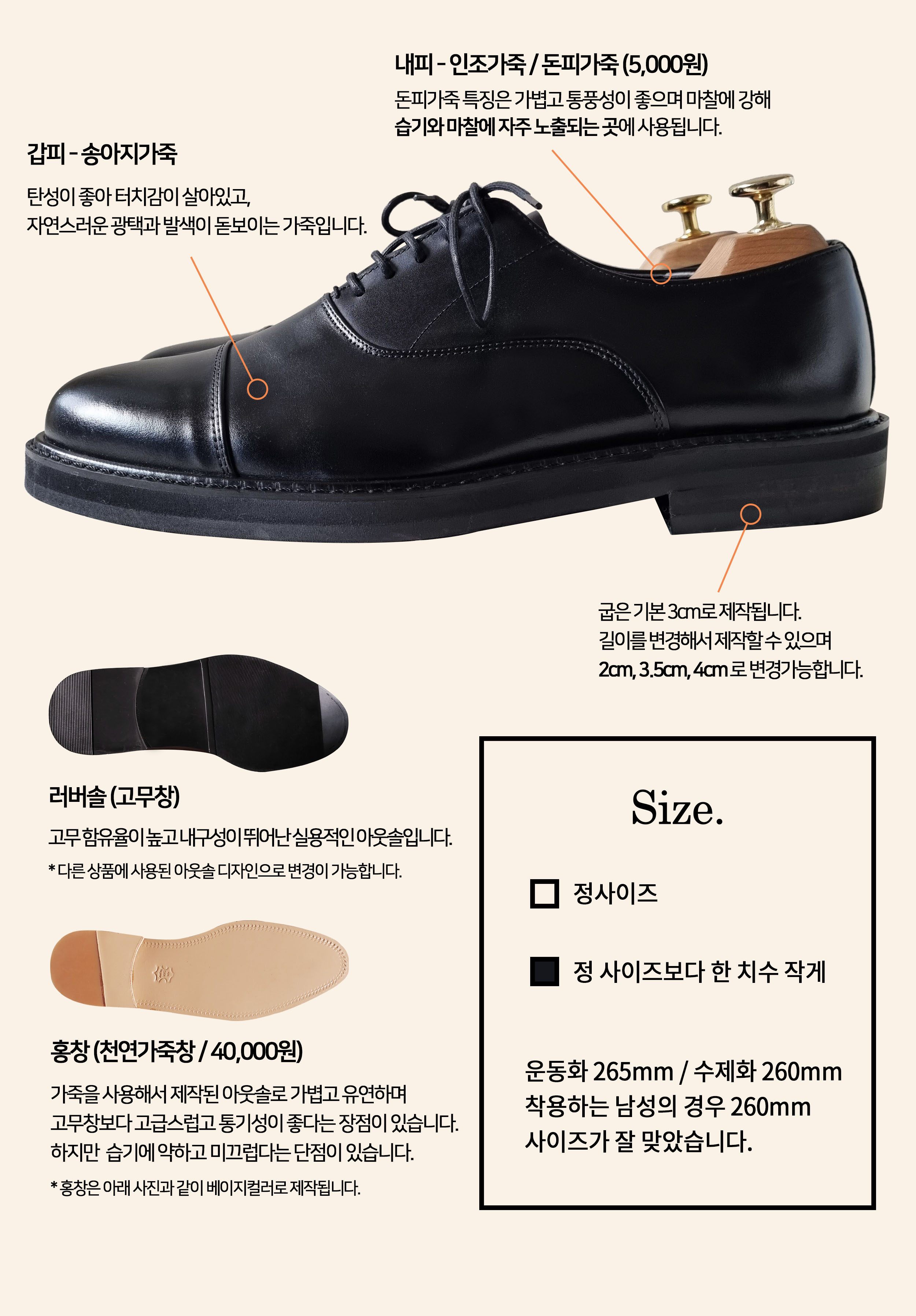 부담없이 편안하게 착용할 수 있는 스트레이트 팁 슈즈