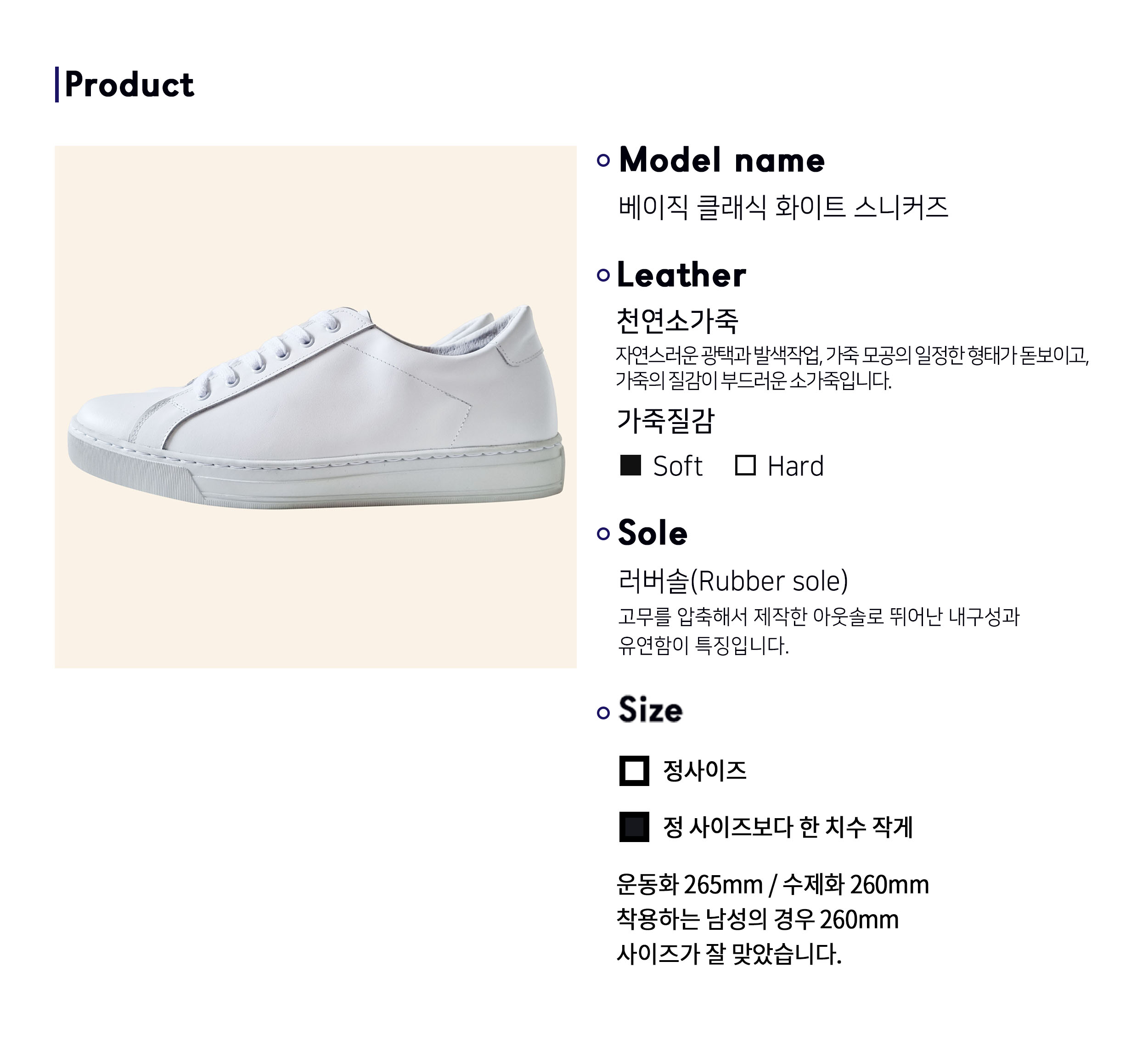 베이직 클래식 스니커즈 C500FL 화이트 소가죽 남성수제화