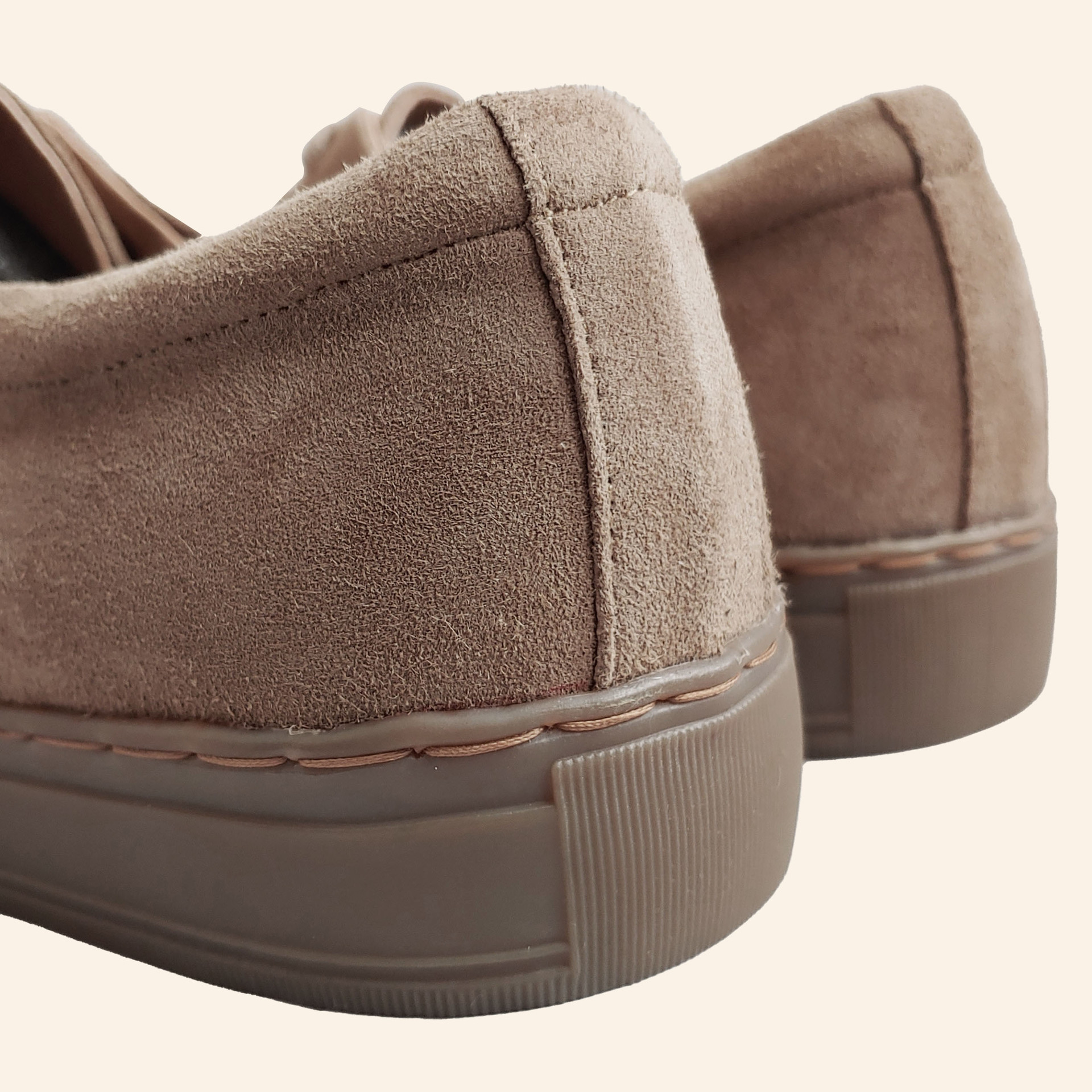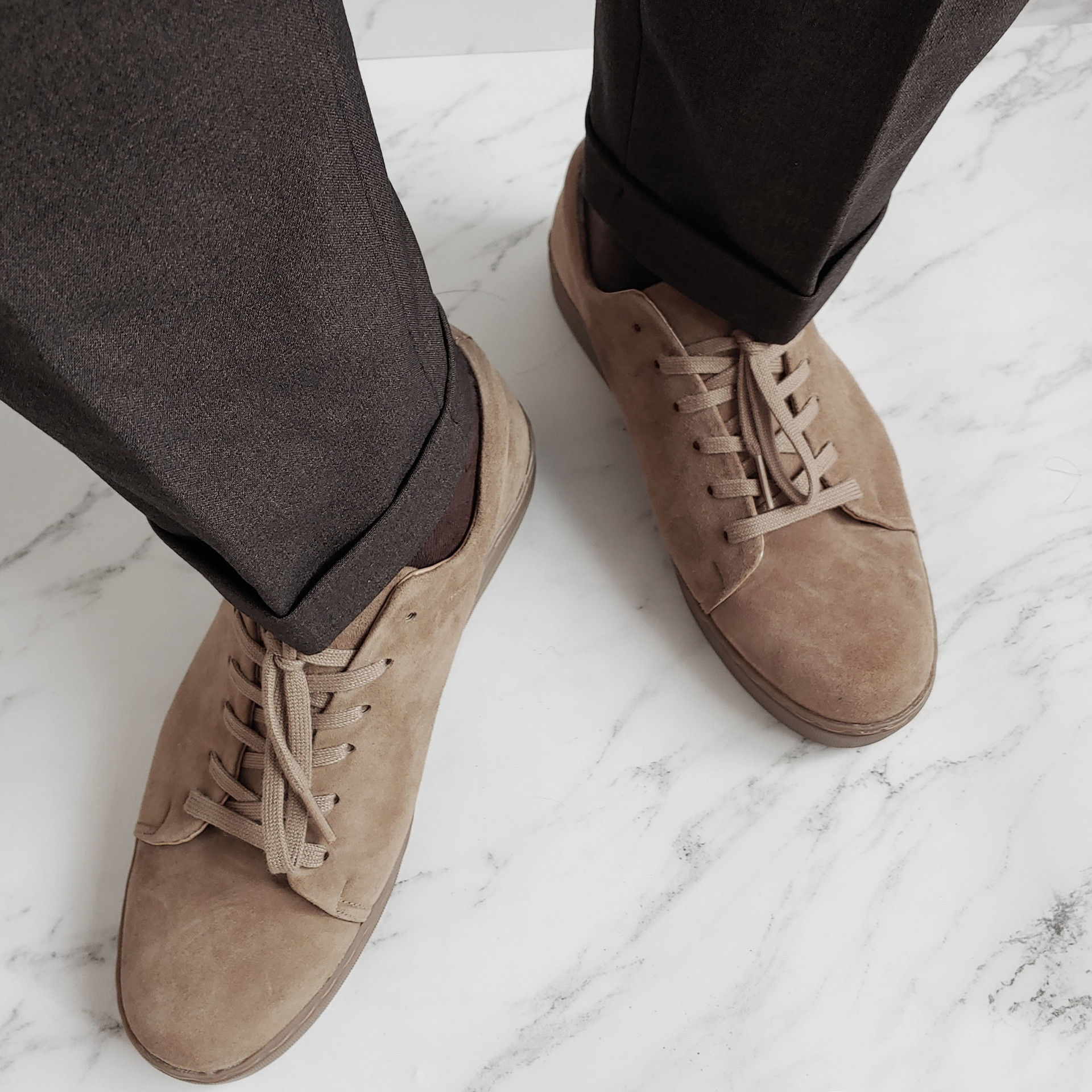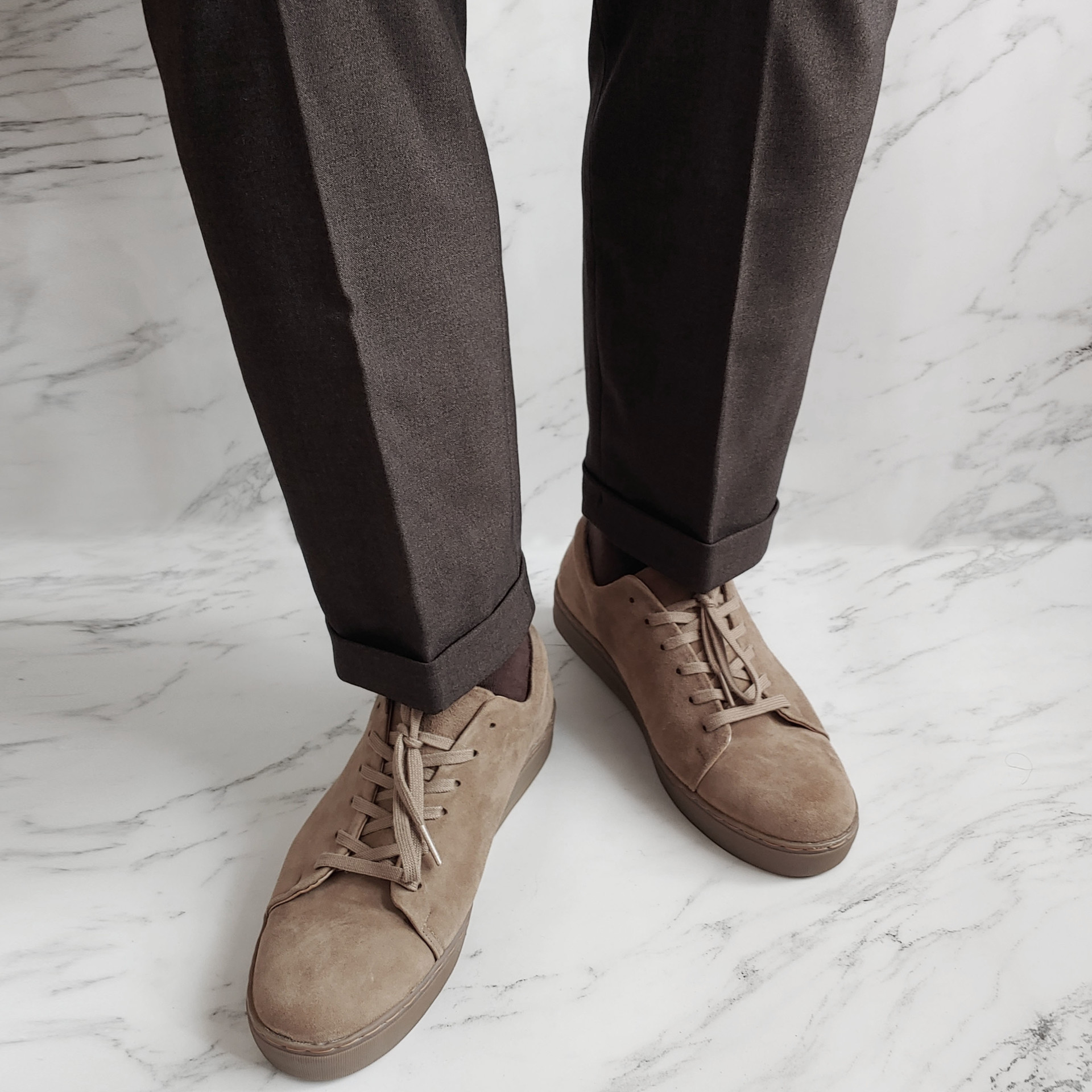 부드러운 질감이 돋보이는 양가죽 스웨이드로 제작한 스니커즈