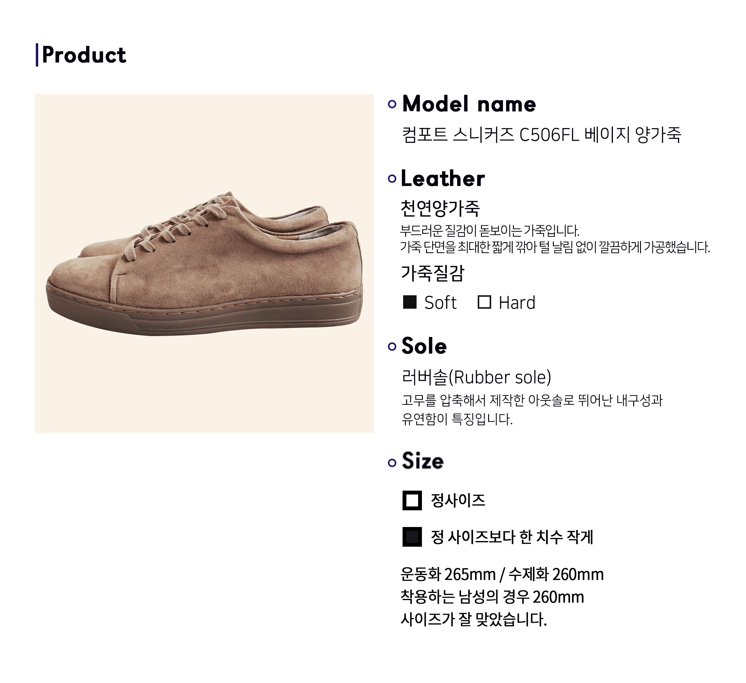컴포트 스니커즈 C506FL 베이지 양가죽 남성수제화