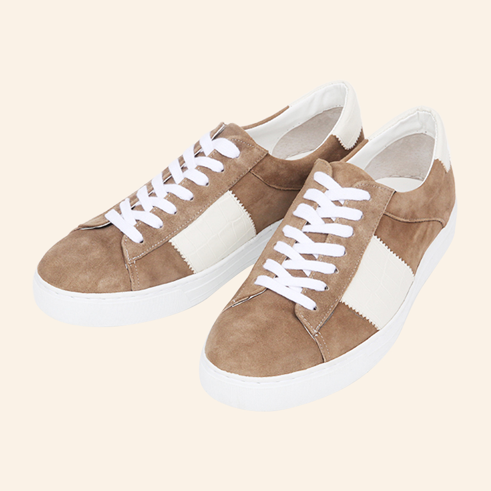 부드러운 스웨이드 가죽에 옆 라인으로 포인트를 준 스니커즈