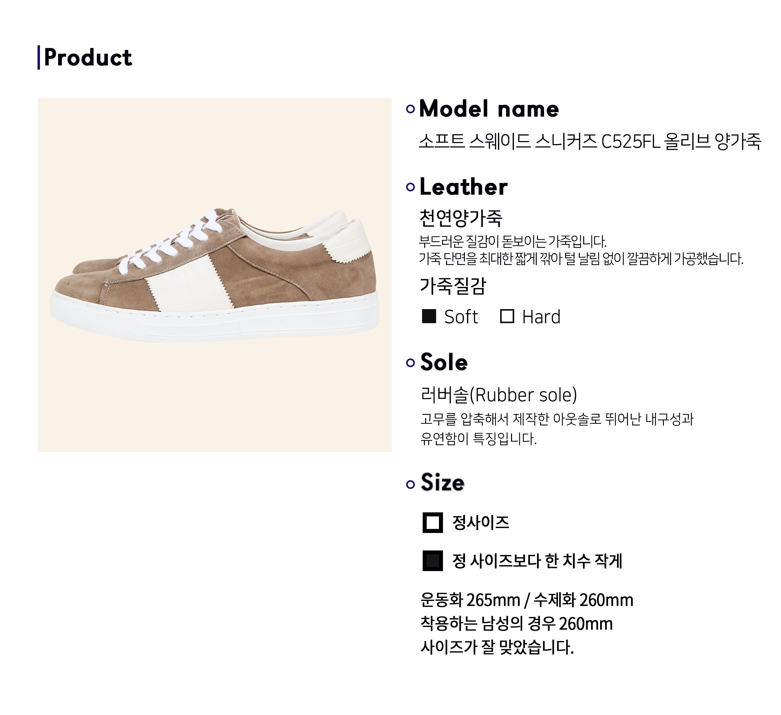 소프트 스웨이드 스니커즈 C525FL 올리브 양가죽 남성수제화