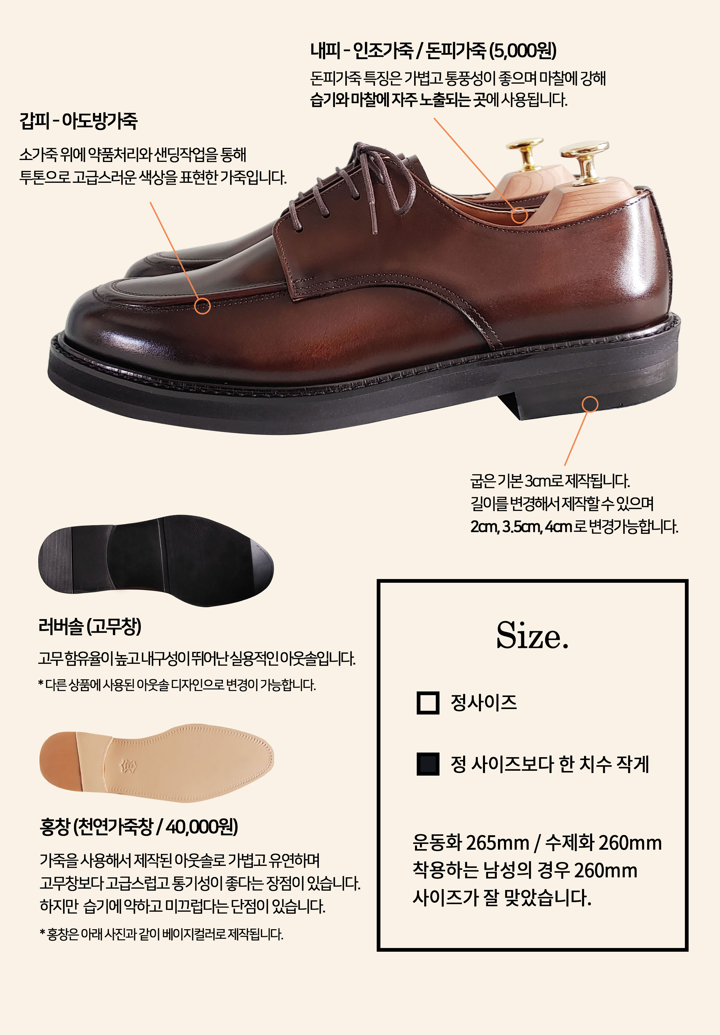 내피 - 인조가죽, 천연돈내피 (선택)