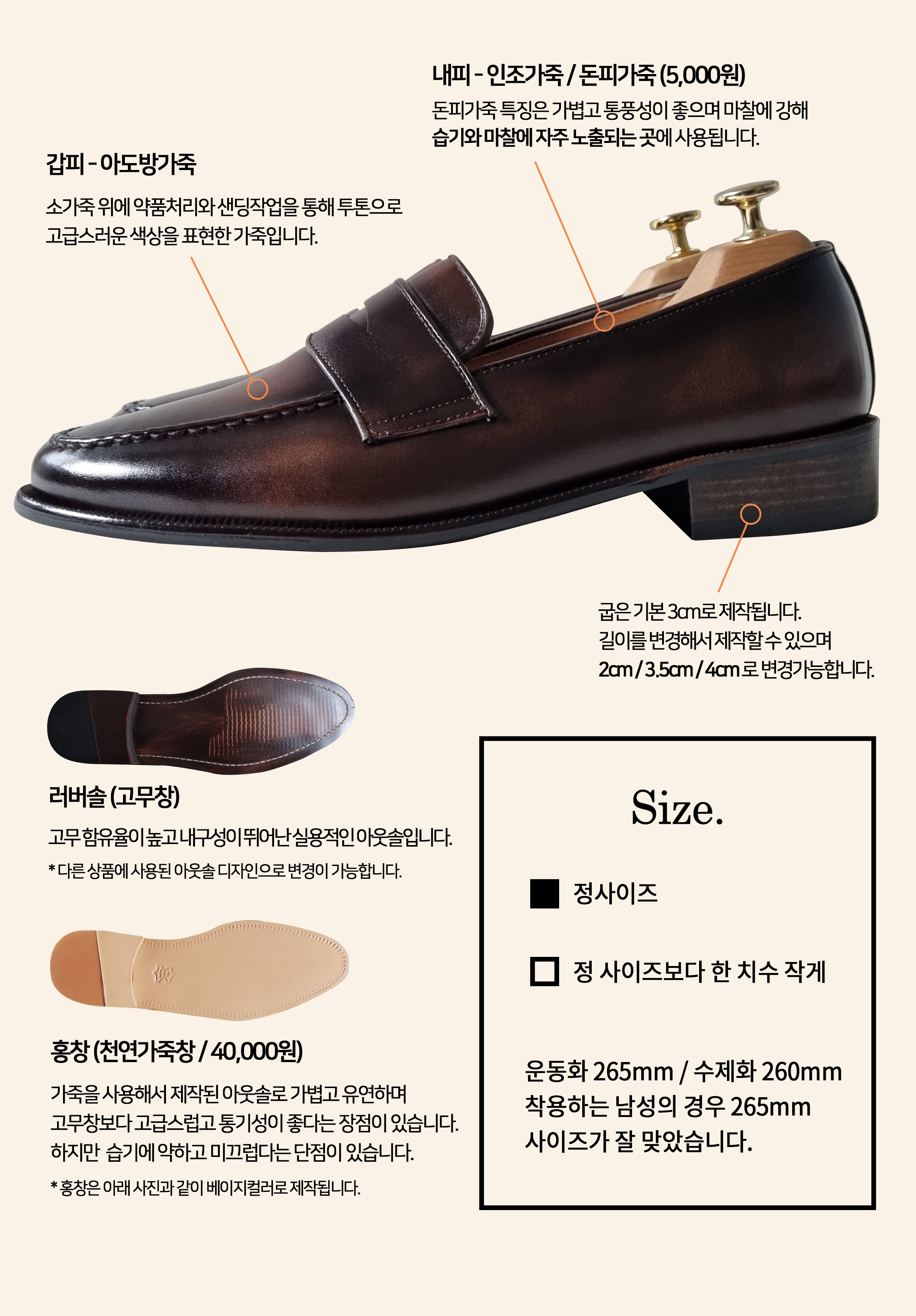 클래식 유팁 페니로퍼 C165FL 브라운 소가죽 남성수제화