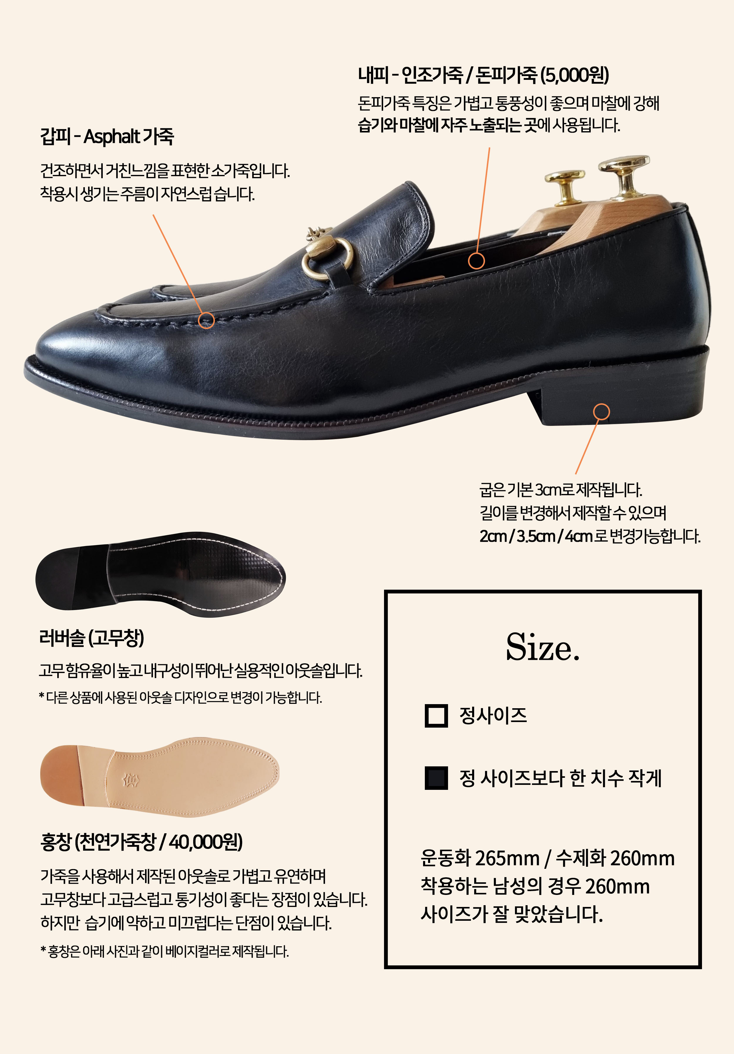 아스팔트 유팁 버클 로퍼 C183FL 블랙 소가죽 남성수제화