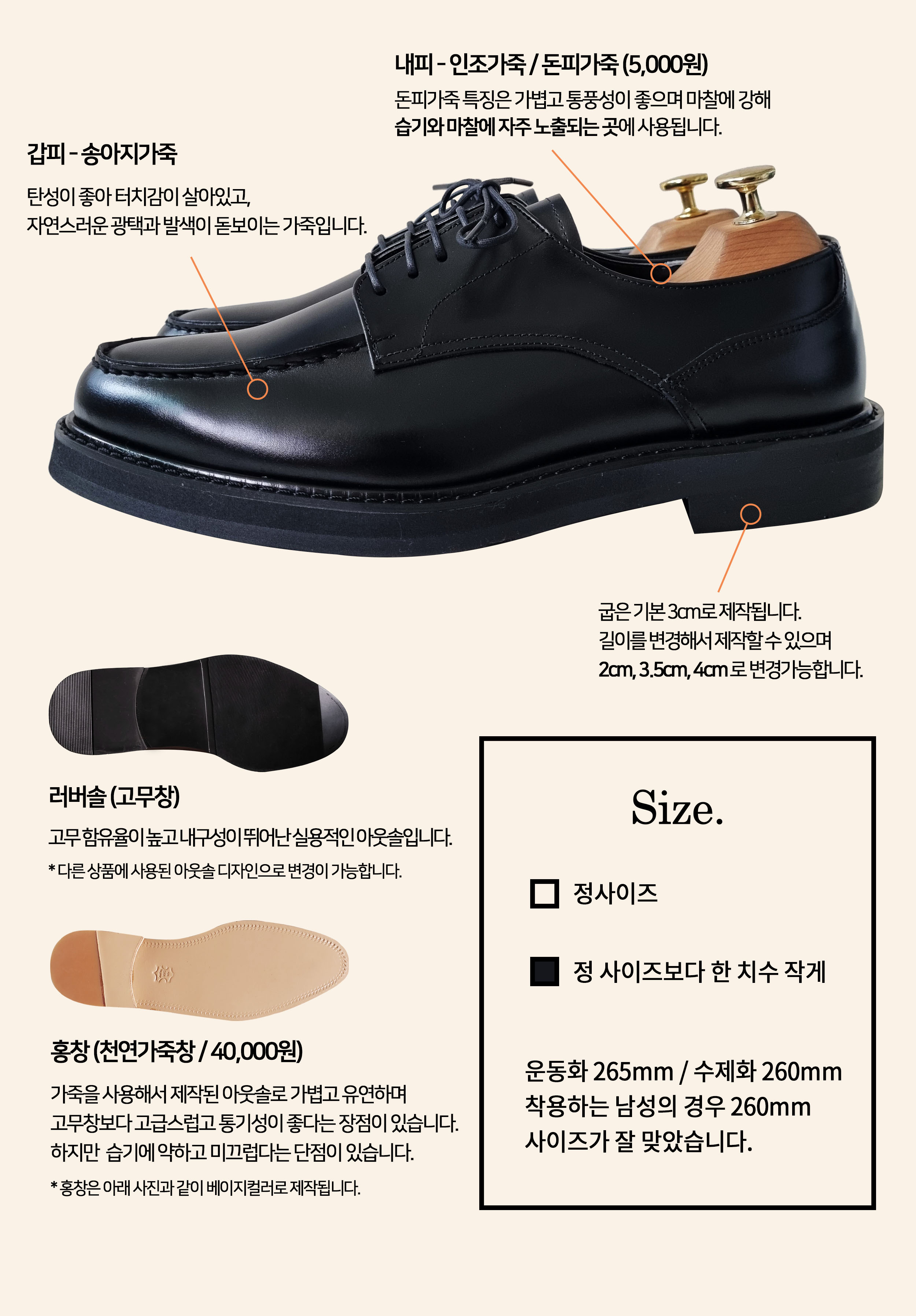 깔끔하면서 무난한 디자인으로 활용도가 높은 더비슈즈