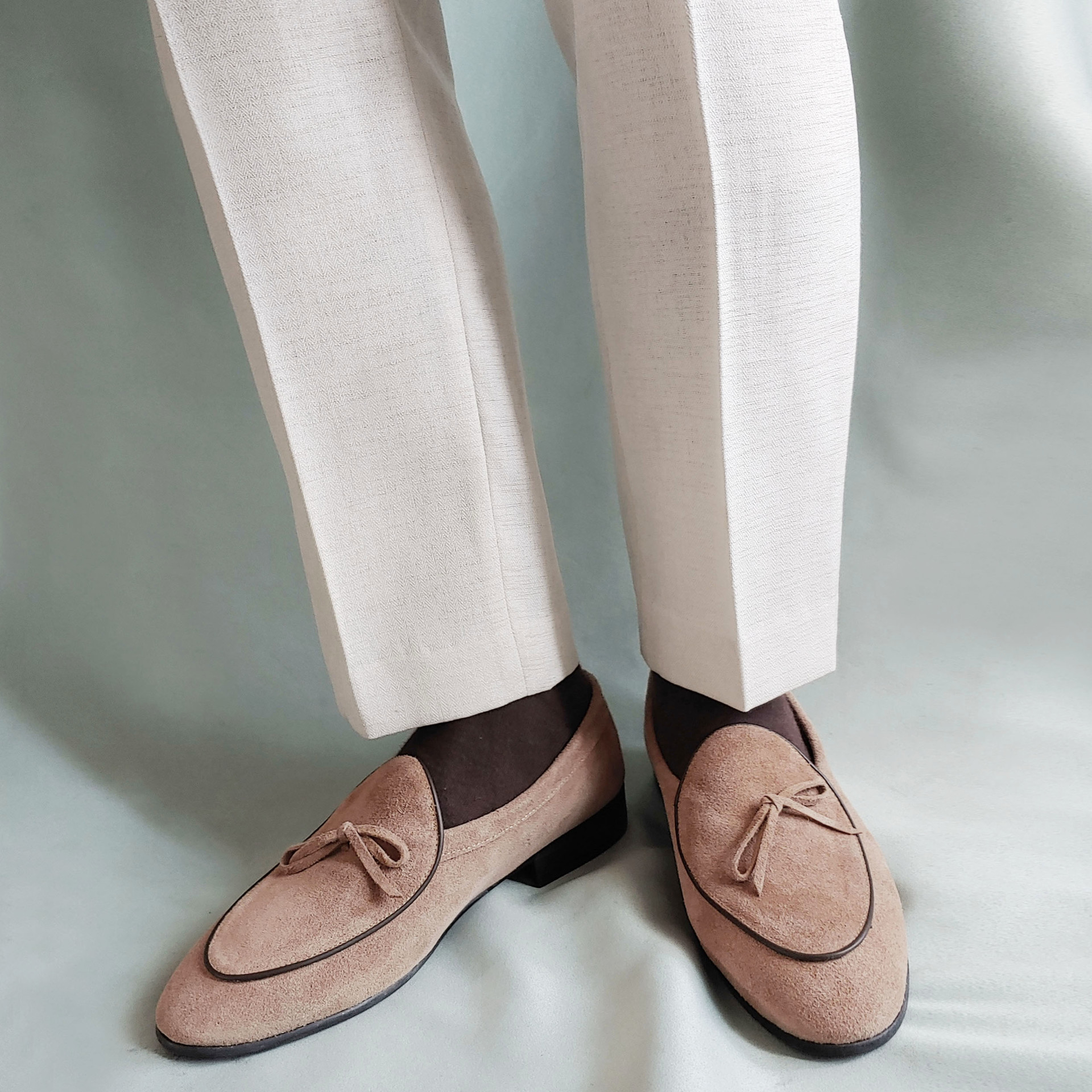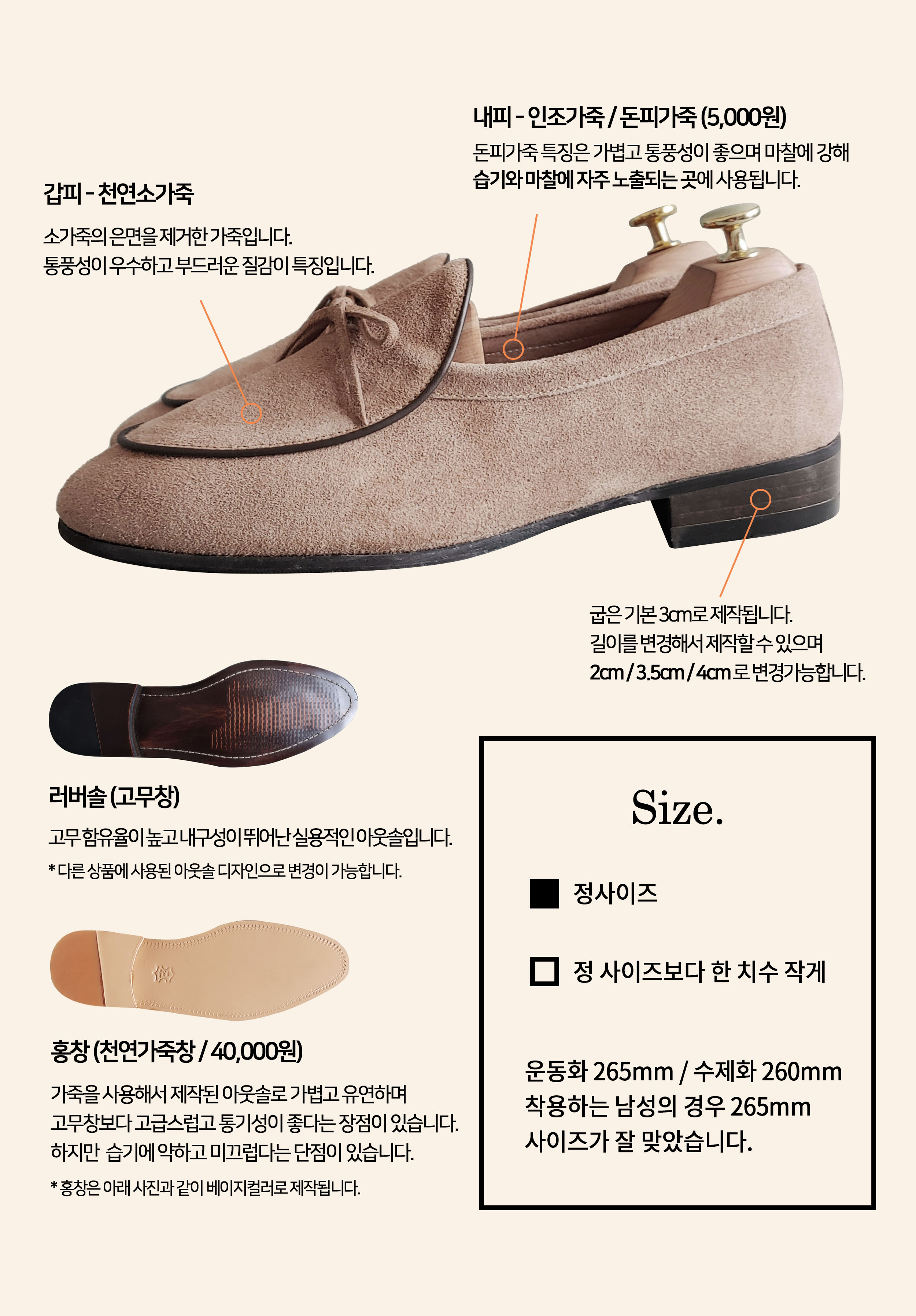 벨지안 스웨이드 리본로퍼 C242FL 베이지 소가죽 남성수제화