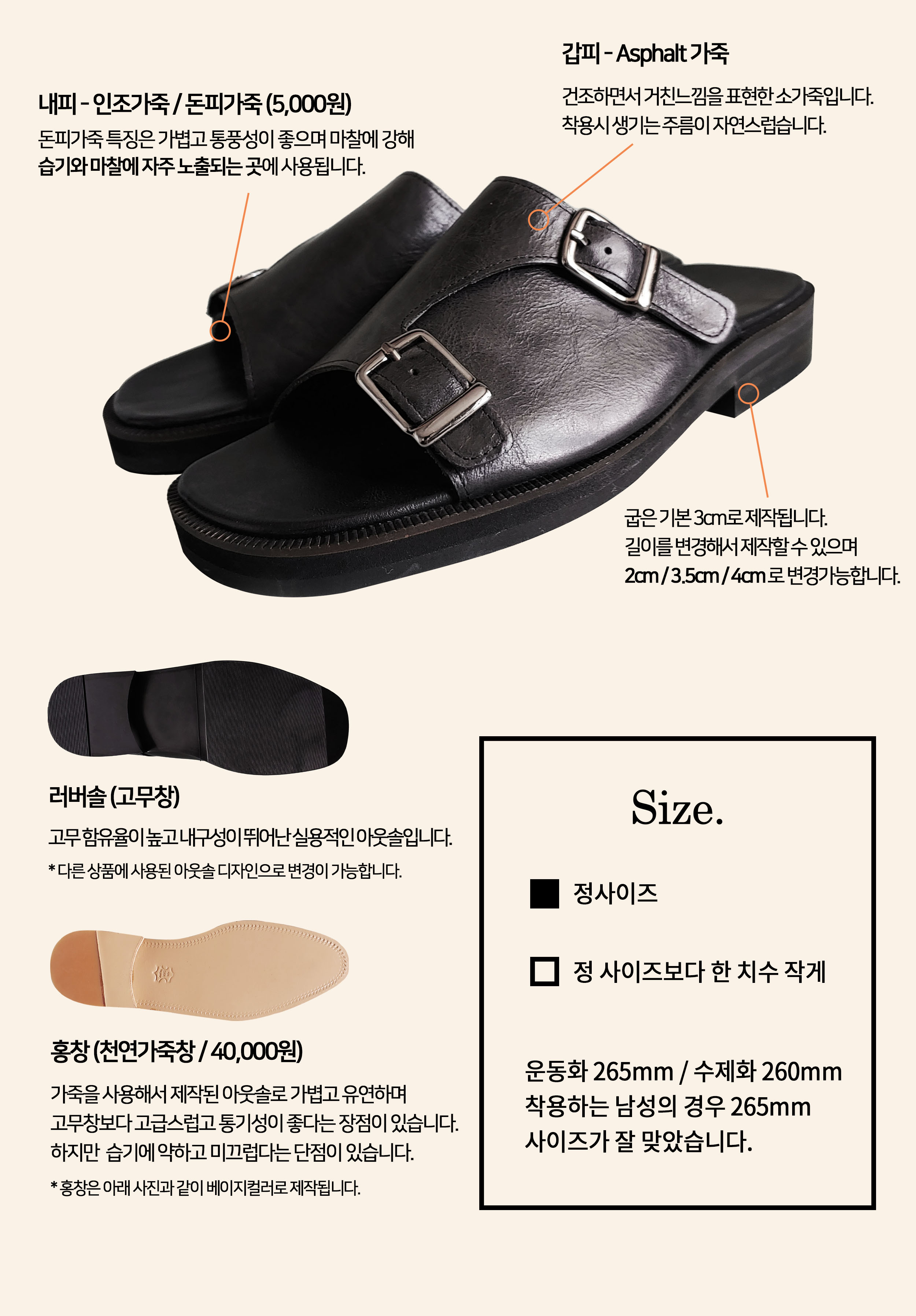 스퀘어 버클 슬리퍼 C244FL 블랙 소가죽 남성수제화