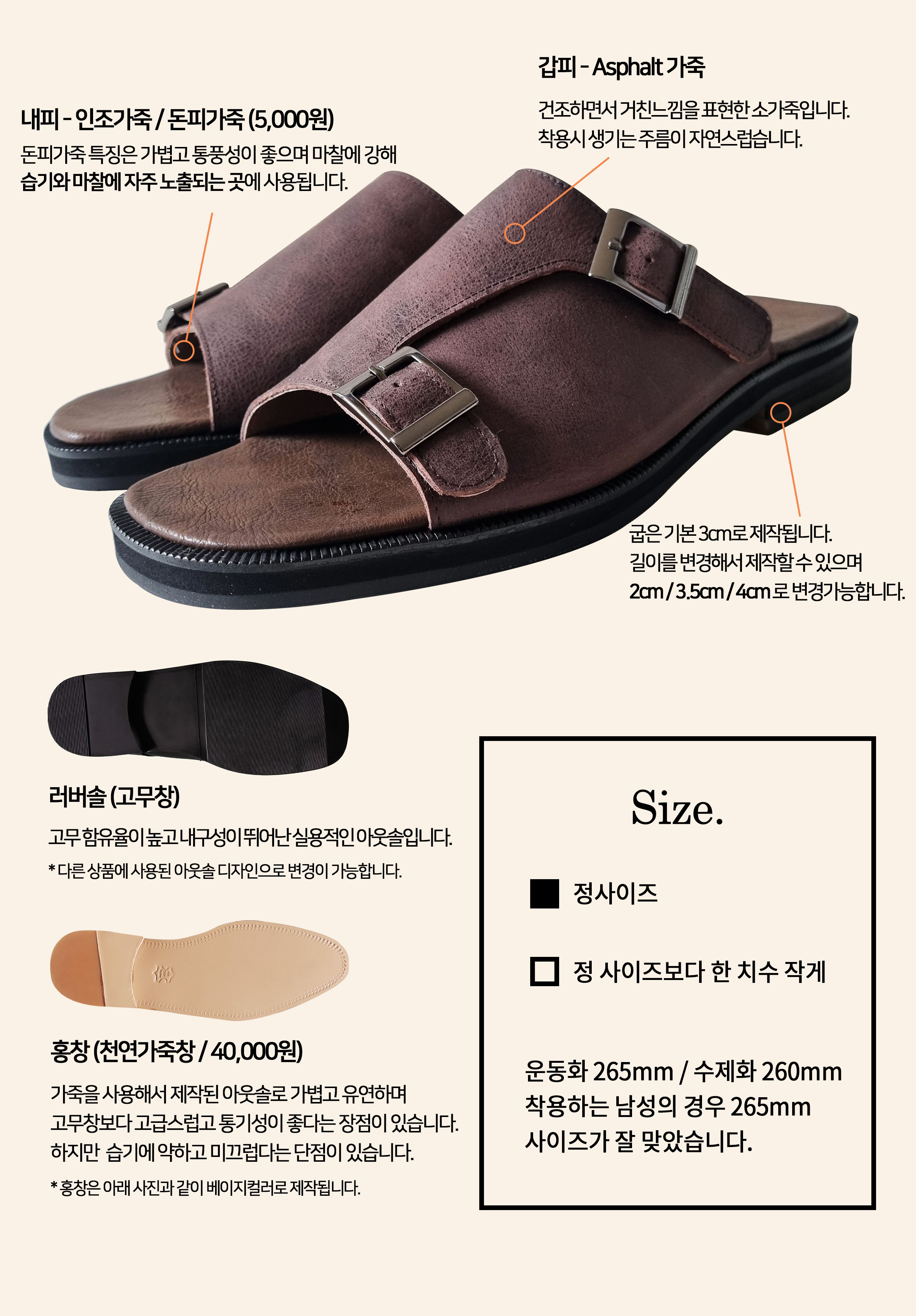 내피 - 인조가죽, 천연돈내피 (선택)