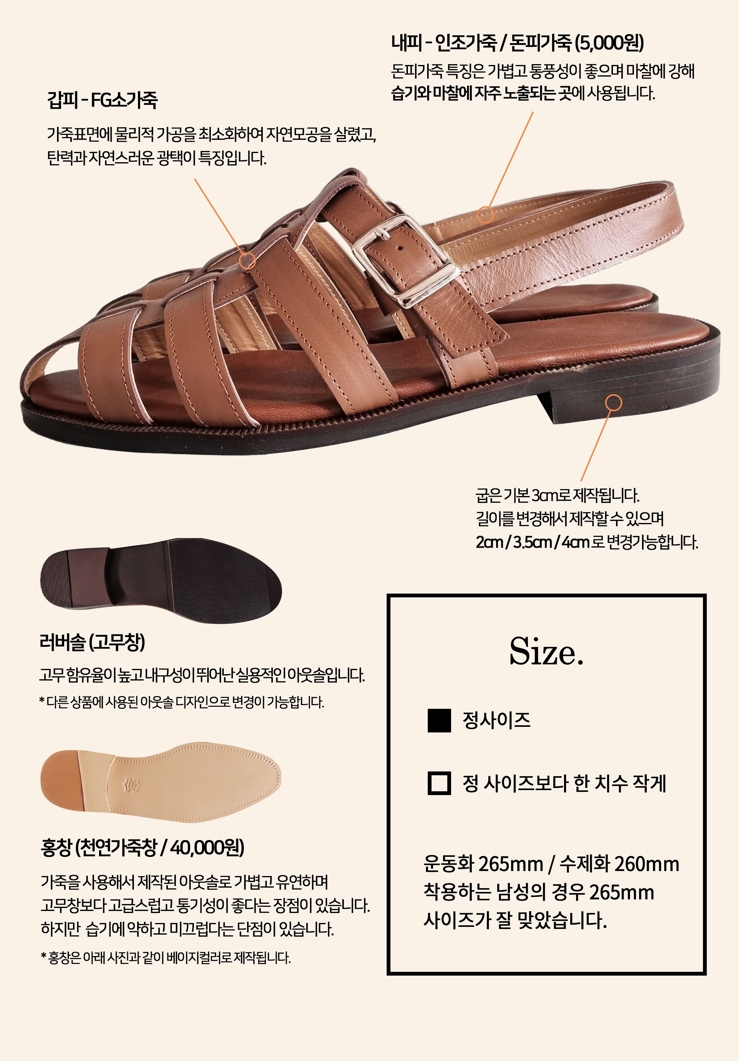 * 샌들 상품은 특수제작한 인솔이 들어가지 않습니다.