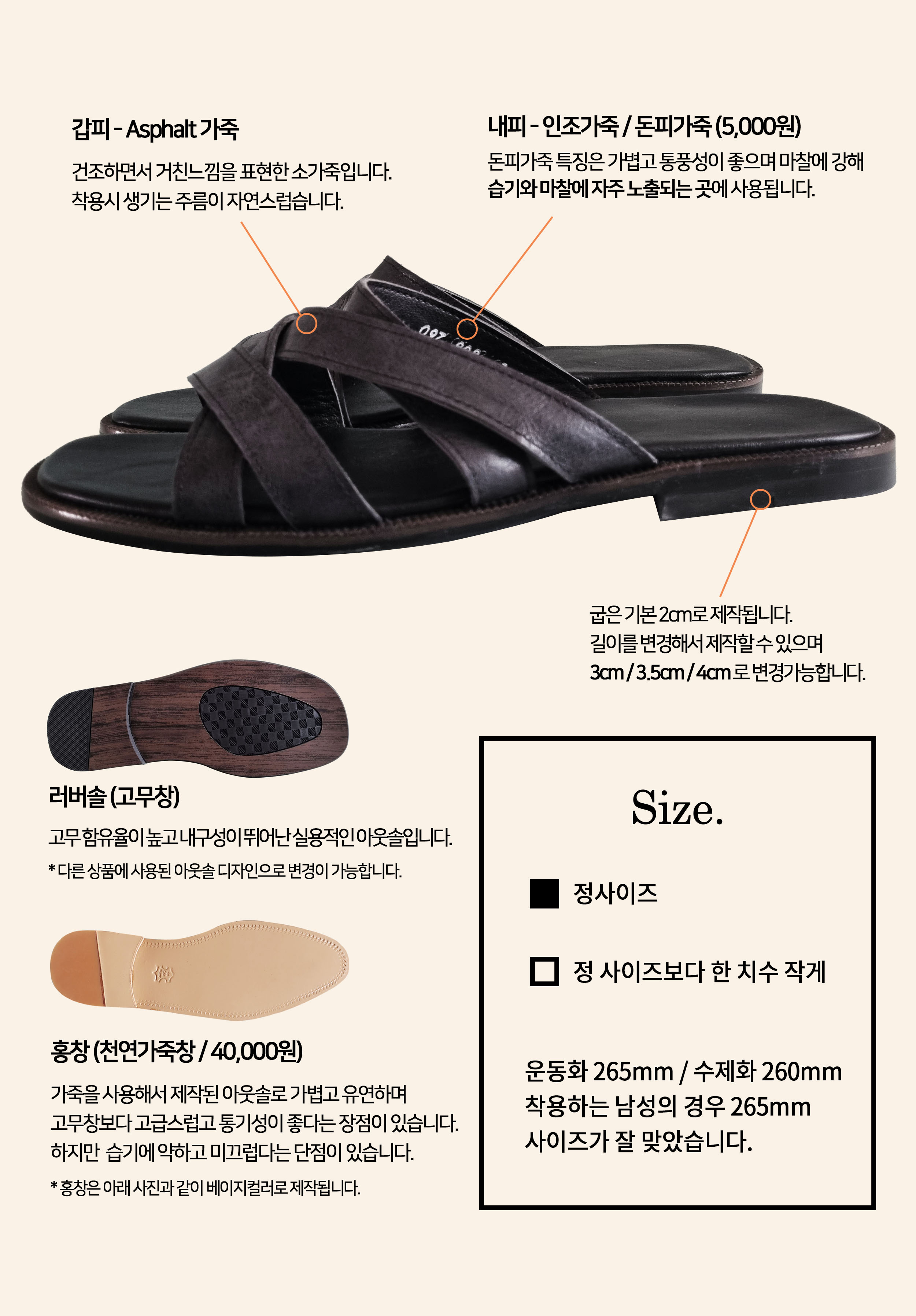 * 샌들 상품은 특수제작한 인솔이 들어가지 않습니다.