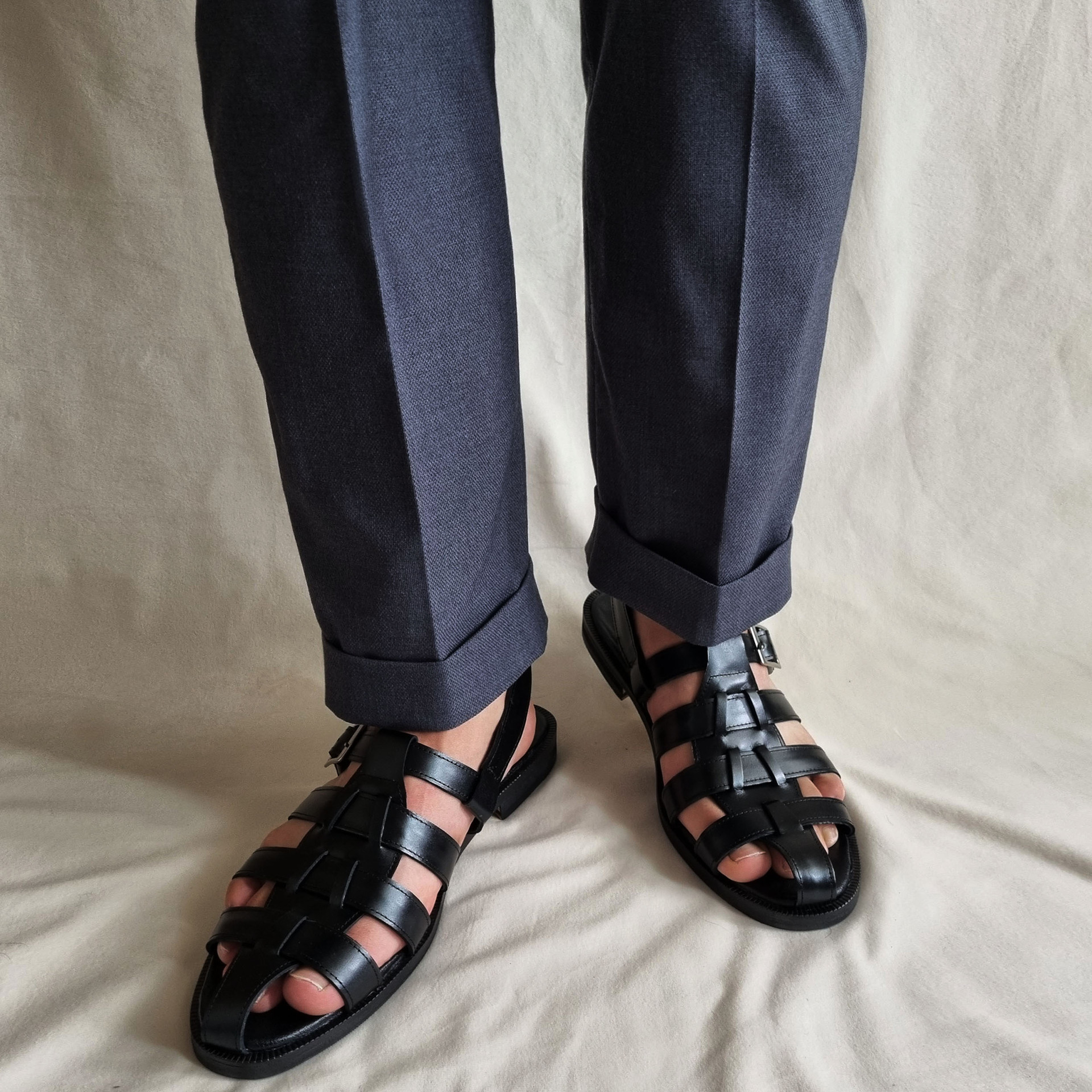 글레디에이터 샌들 C258FL 블랙 송아지가죽 남성수제화