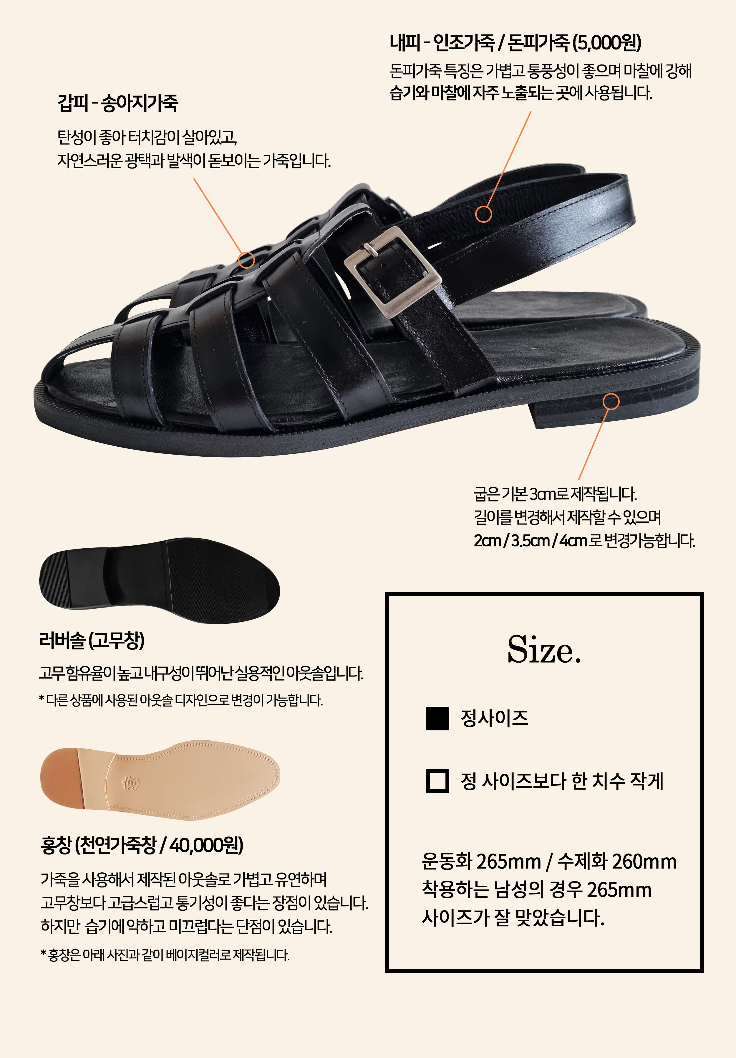 내피 - 인조가죽, 천연돈내피 (선택)