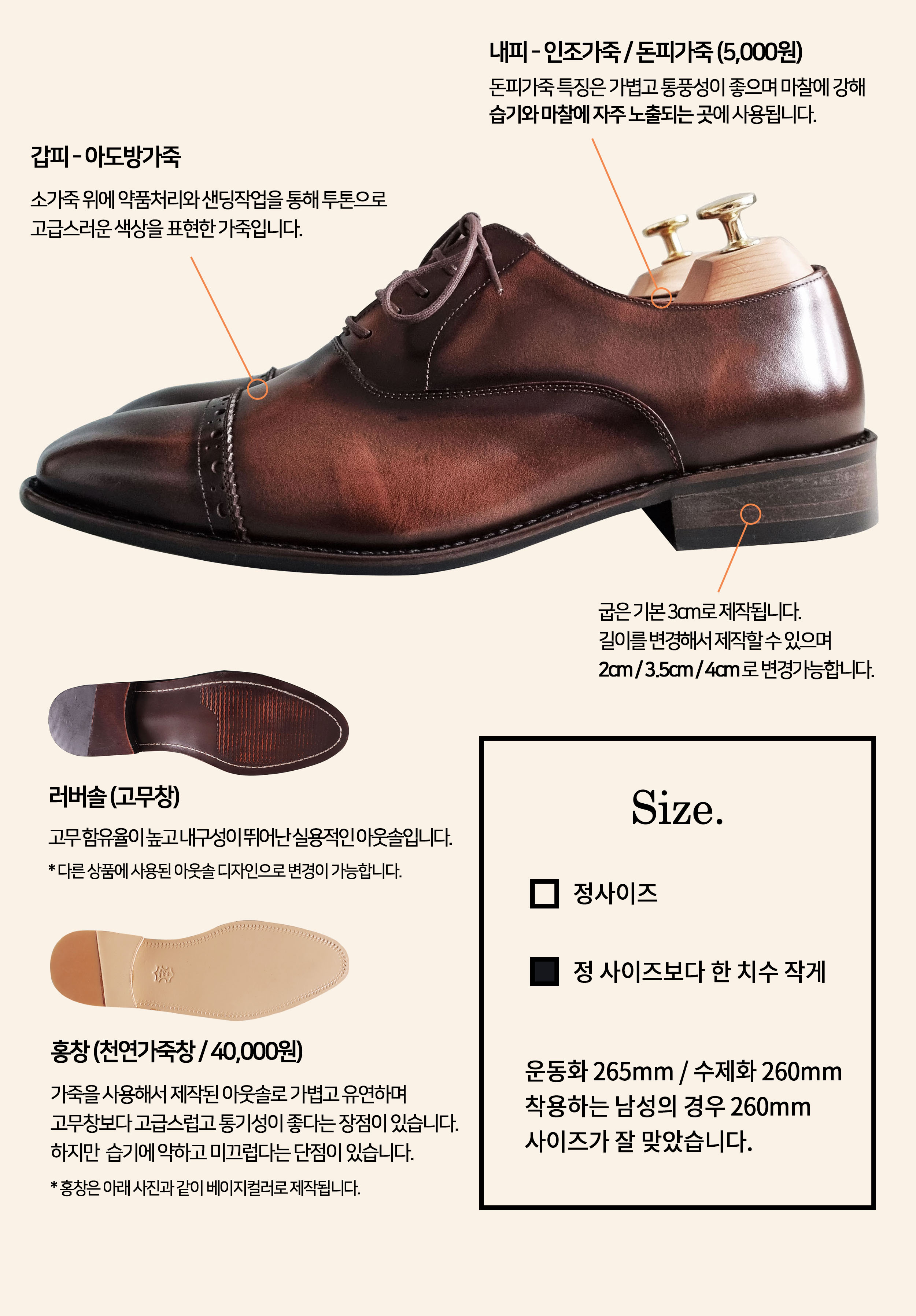 클래식 스트레이트 팁 C265FL 브라운 소가죽 남성수제화