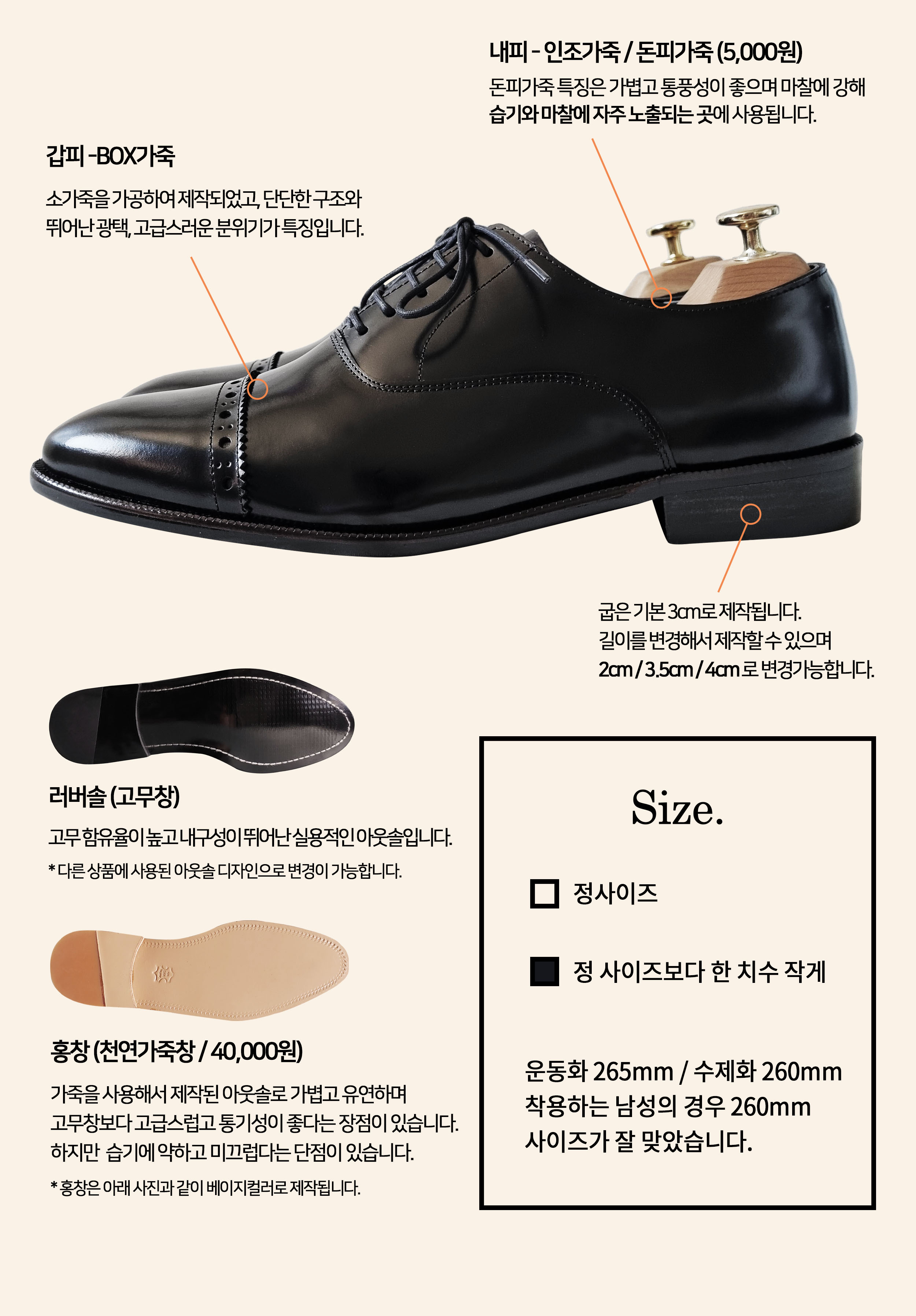 내피 - 인조가죽, 천연돈내피 (선택)