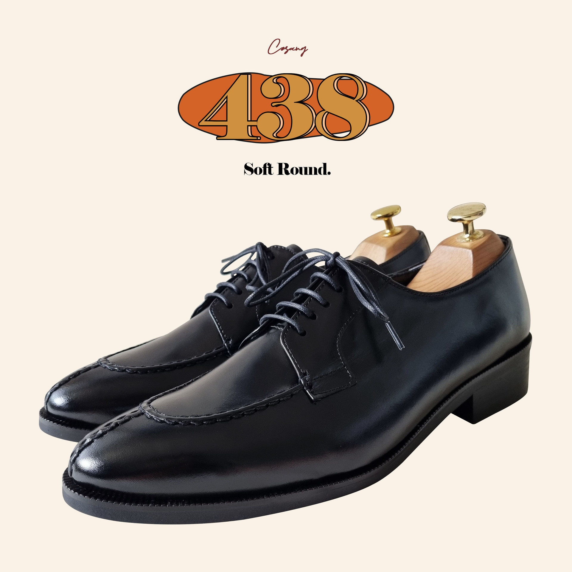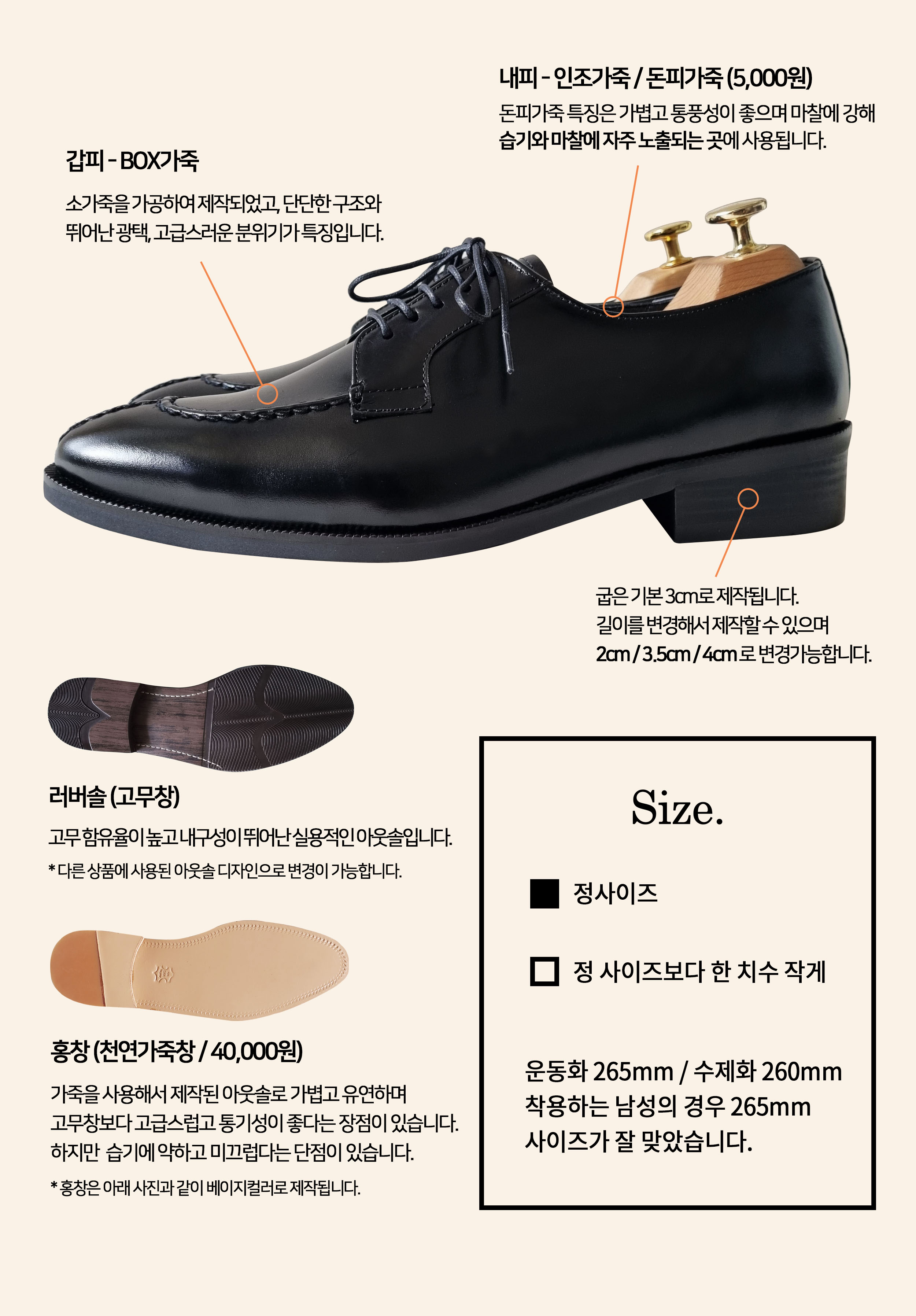 뭉툭한 라스트에 유팁장식을 더한 더비슈즈