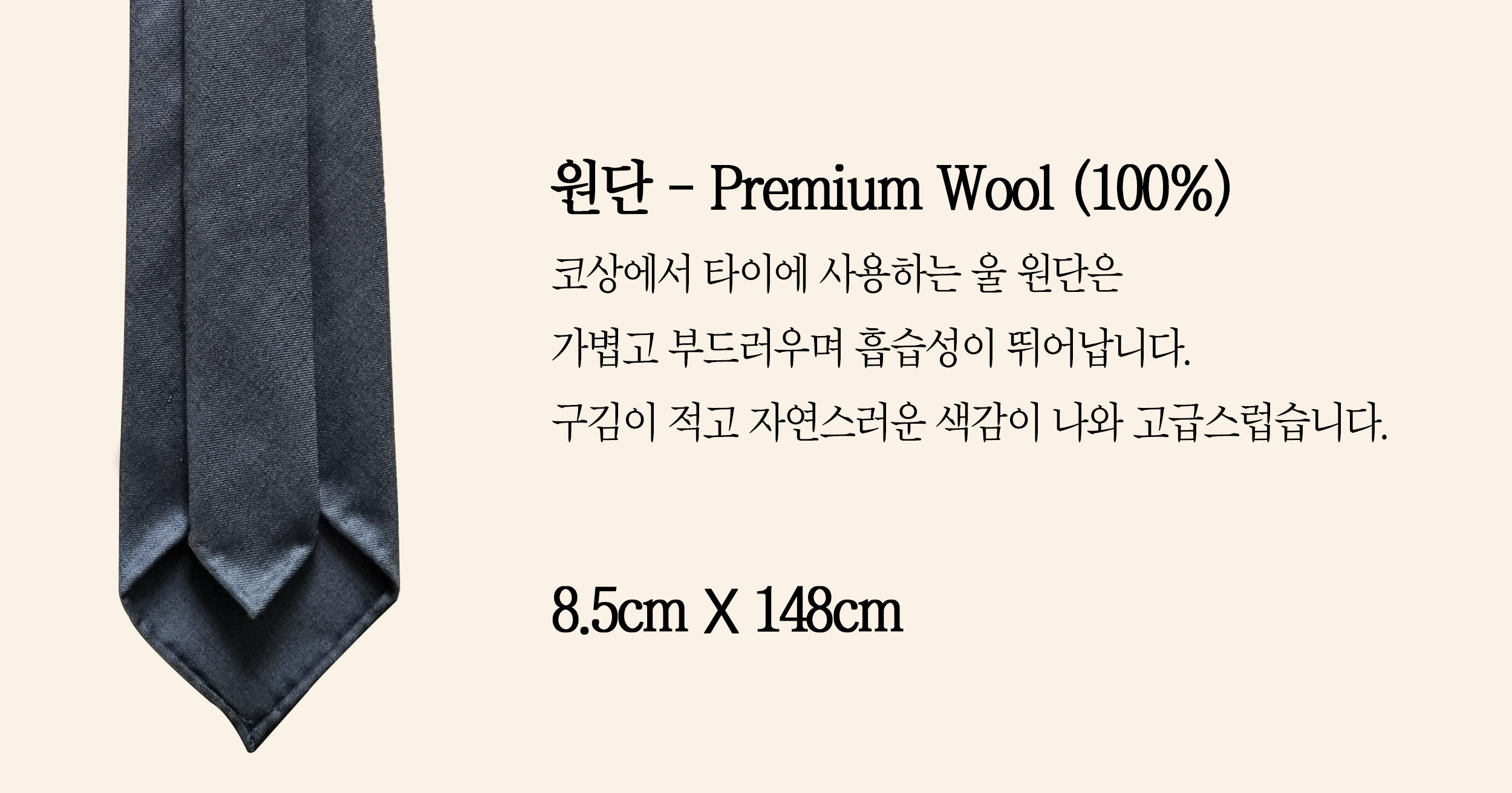 고급 울 원단을 사용하여 제작한 스포데라토 타이