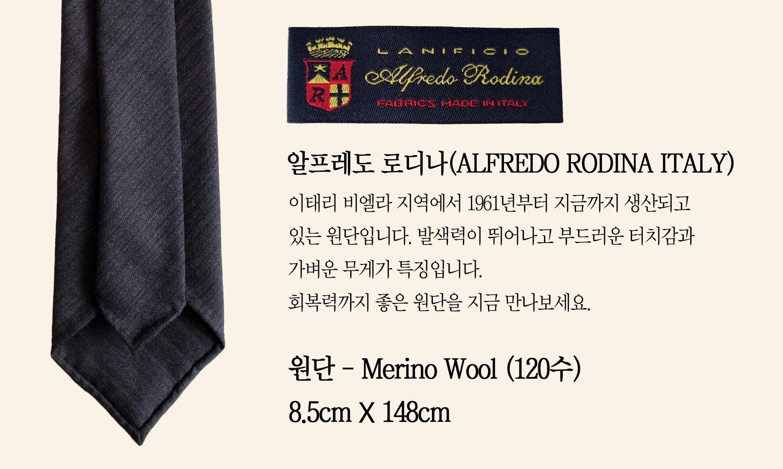 이태리 알프레도 로디나 원단을 사용해서 제작된 타이, 고급스러운 분위기를 연출해보세요.