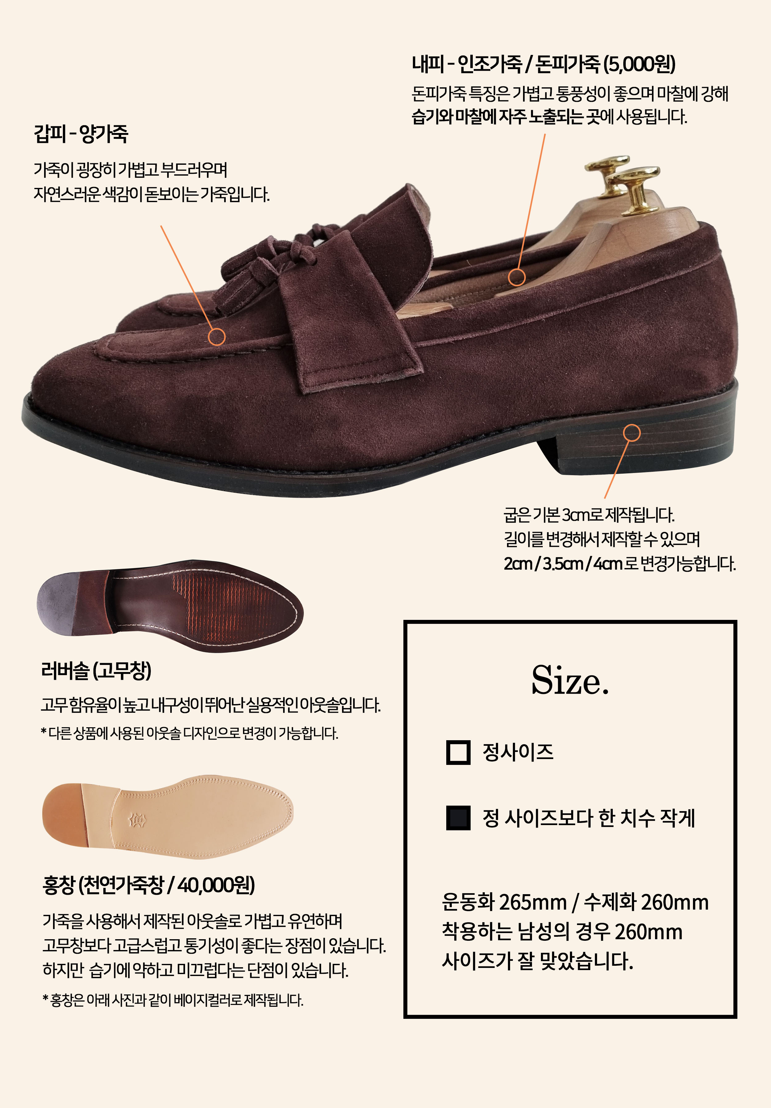 슬림 라스트 스웨이드 태슬로퍼 C297FL 브라운 양가죽 남성수제화