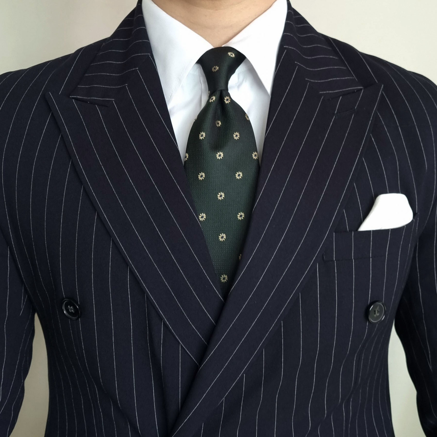 C032J 플라워 패턴 그린 실크 타이 (3폴드)
