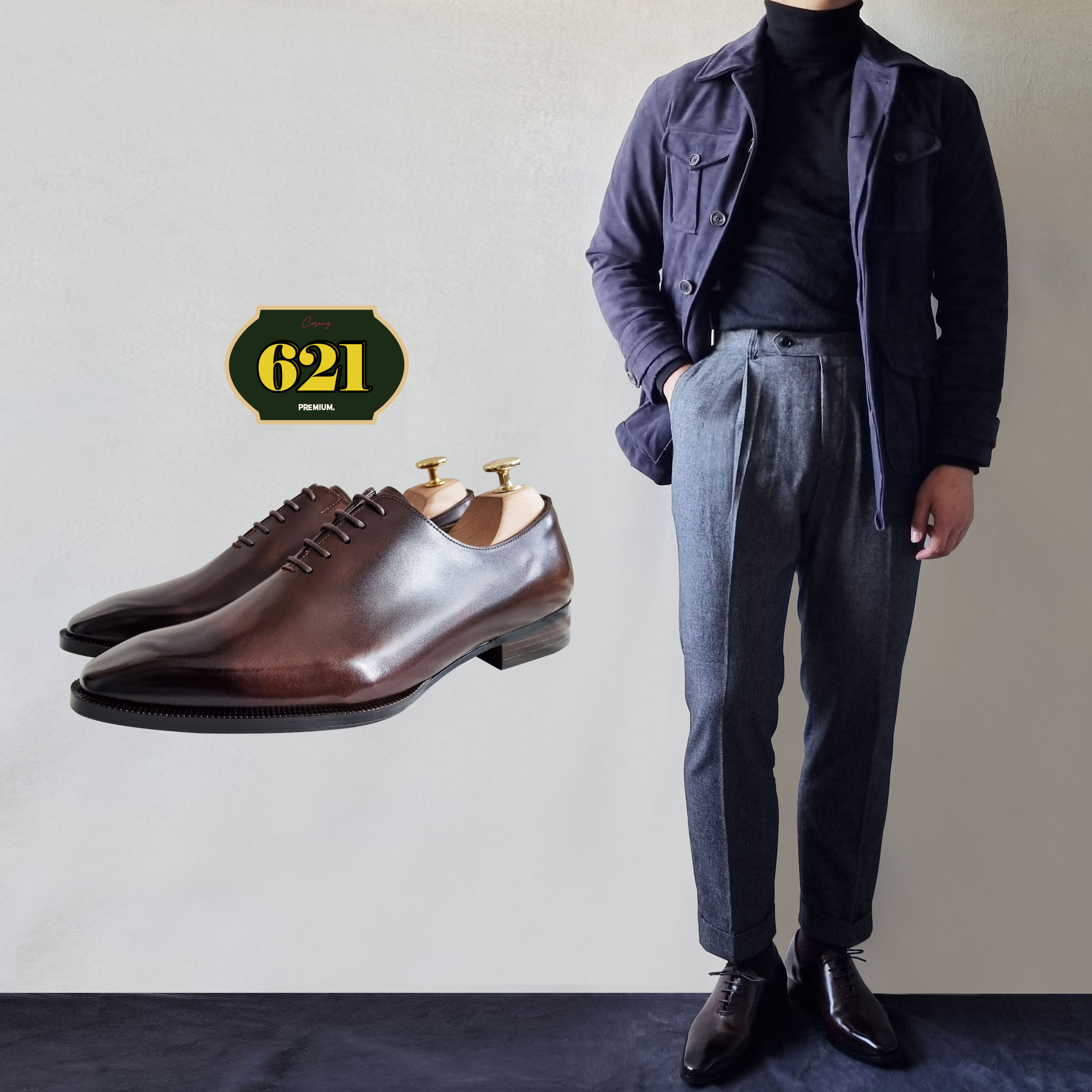 플레인 토 옥스퍼드 슈즈 C6226FL 브라운 소가죽 남성수제화