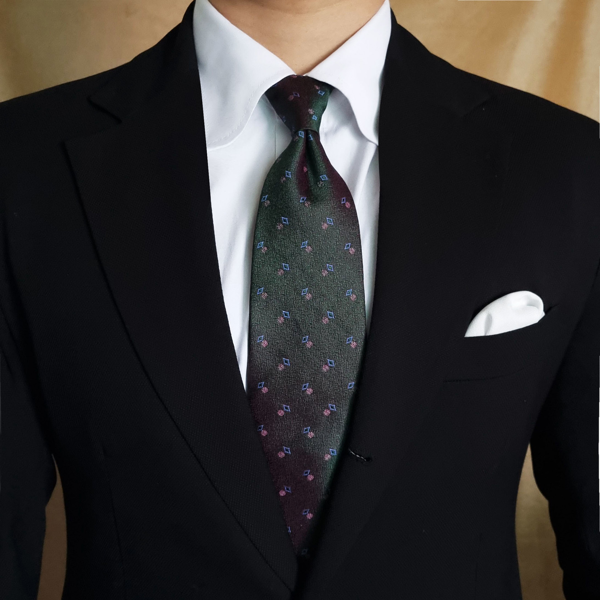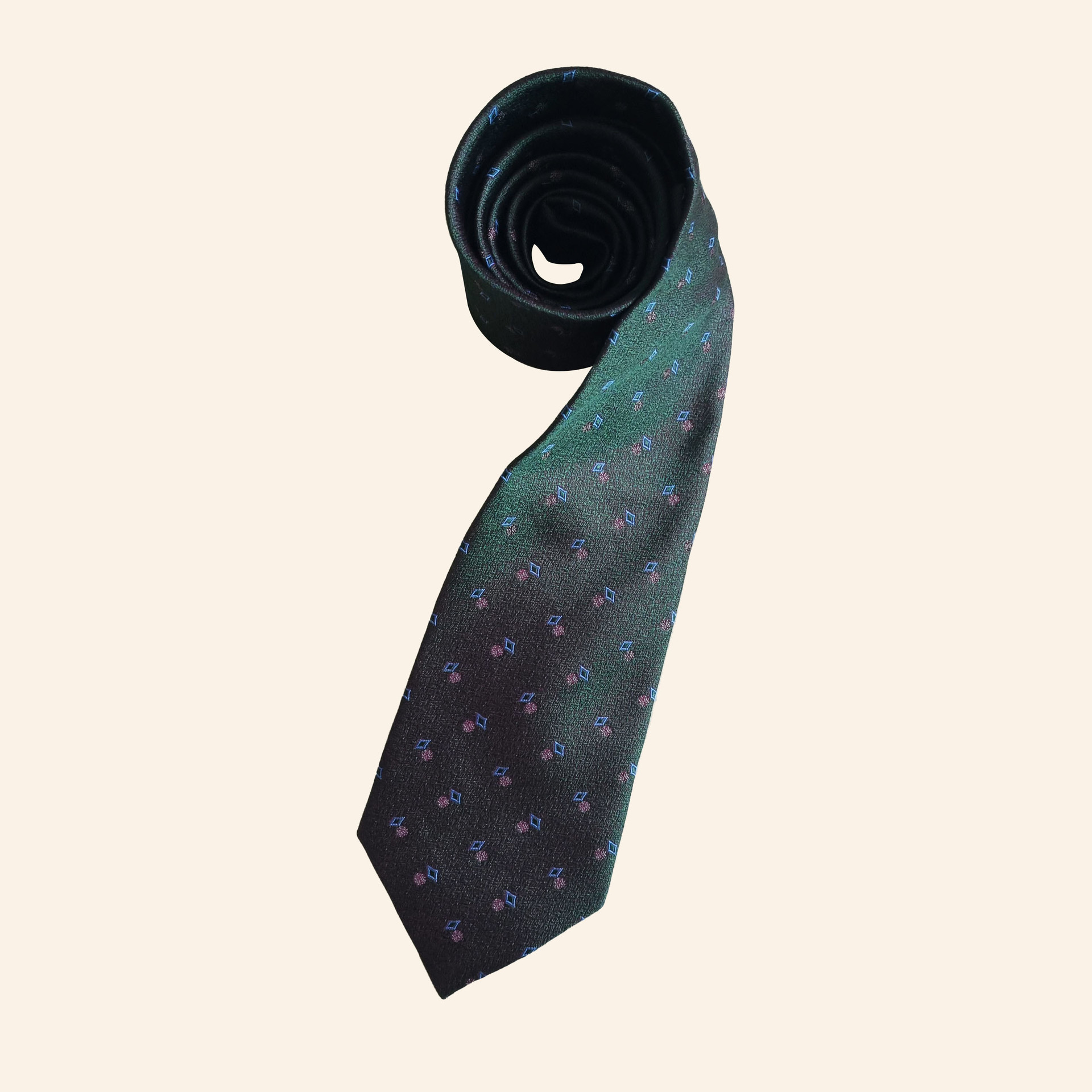 C045J 레트로 올오버 그린 실크 타이 (3폴드)