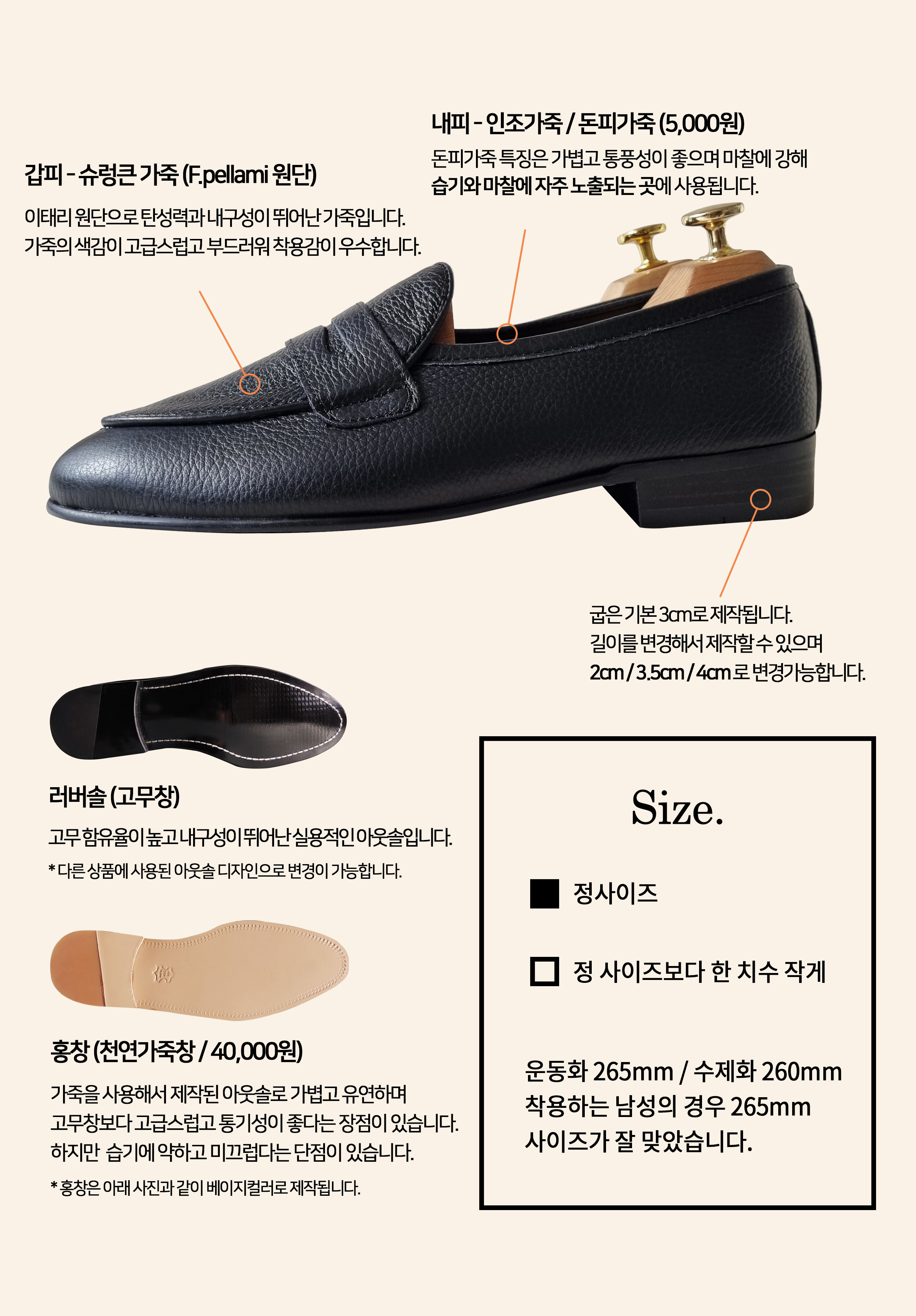 아워 슈렁큰 페니로퍼 C302FL 올블랙 (이태리 소가죽)