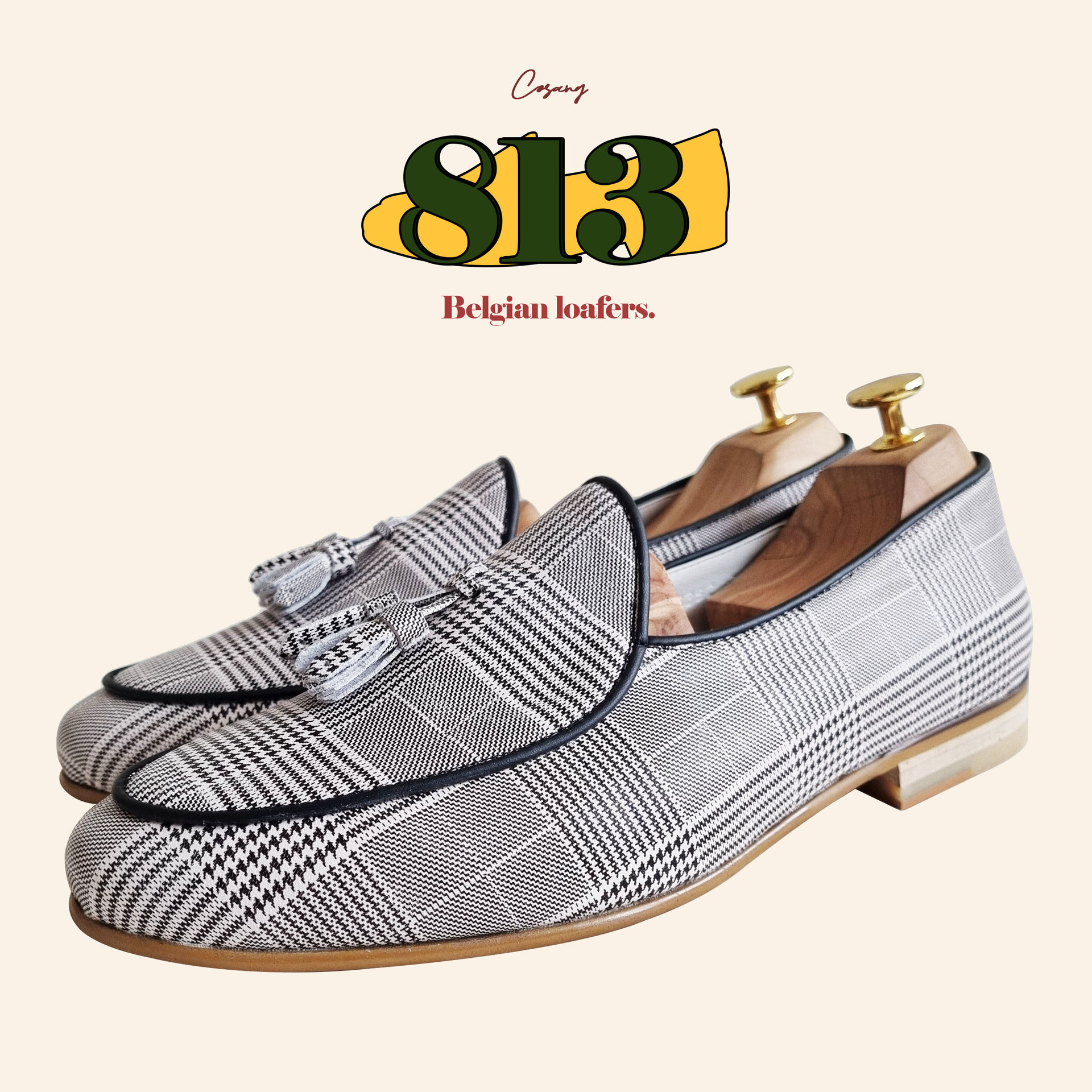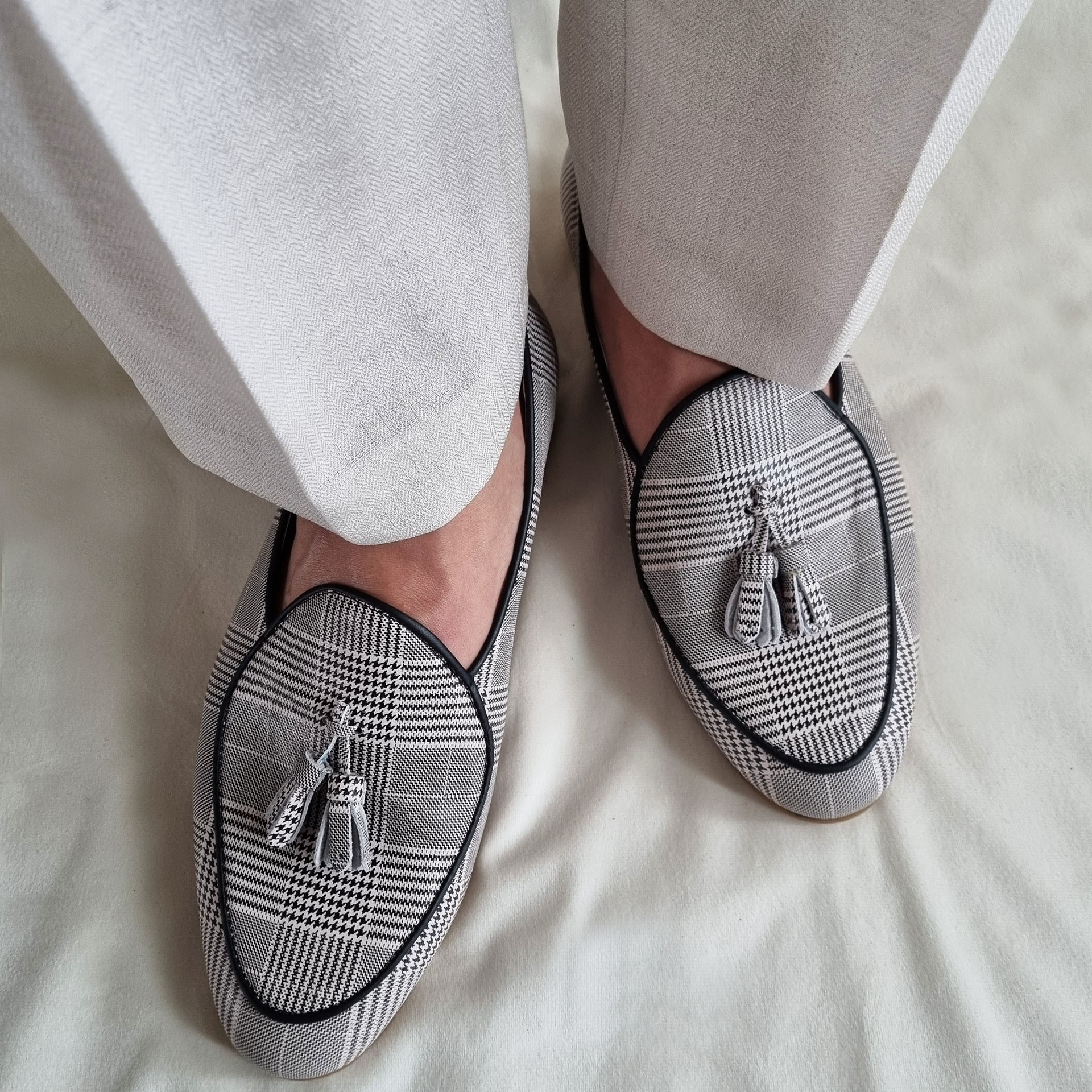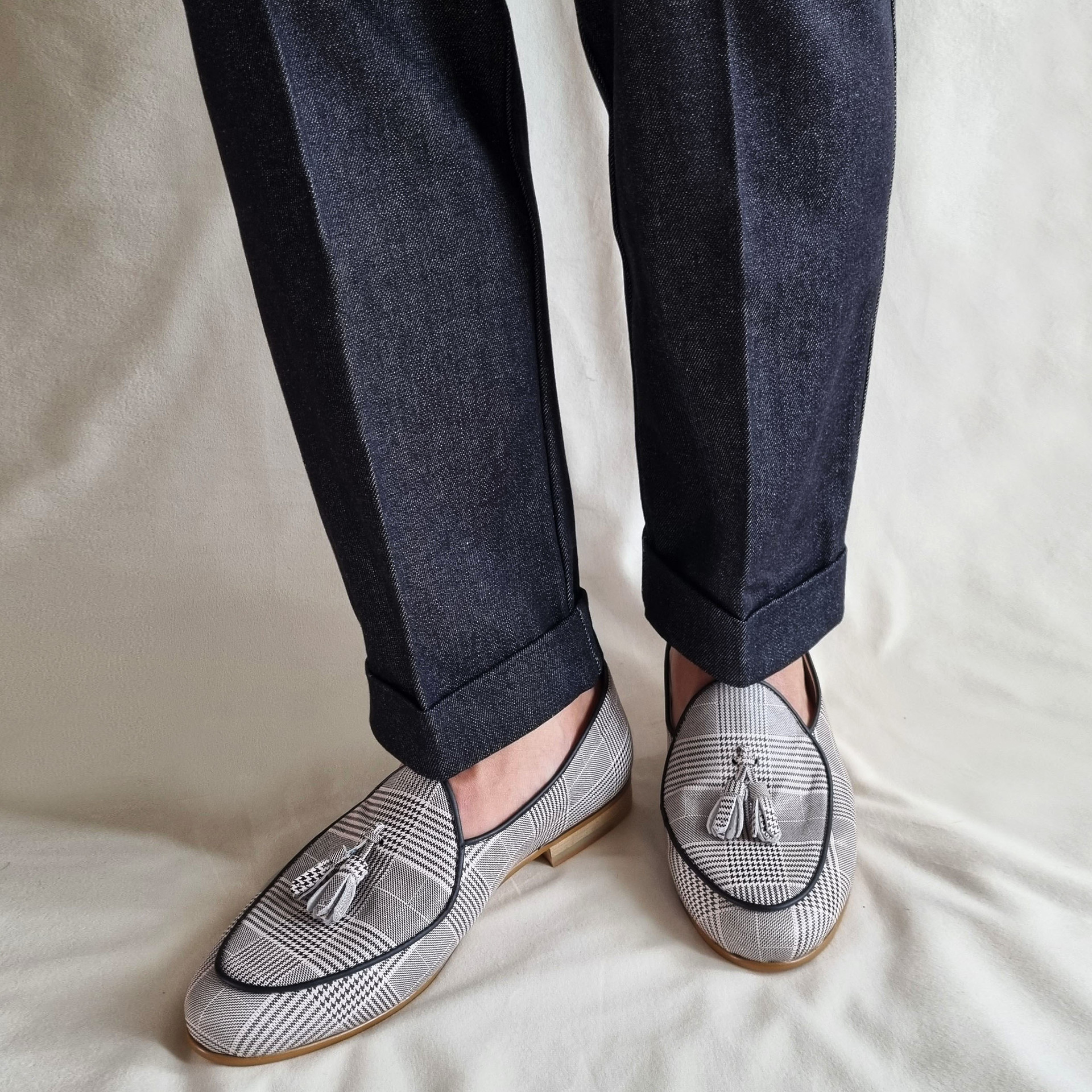 클래식한 하운드투스패턴이 돋보이는 태슬로퍼