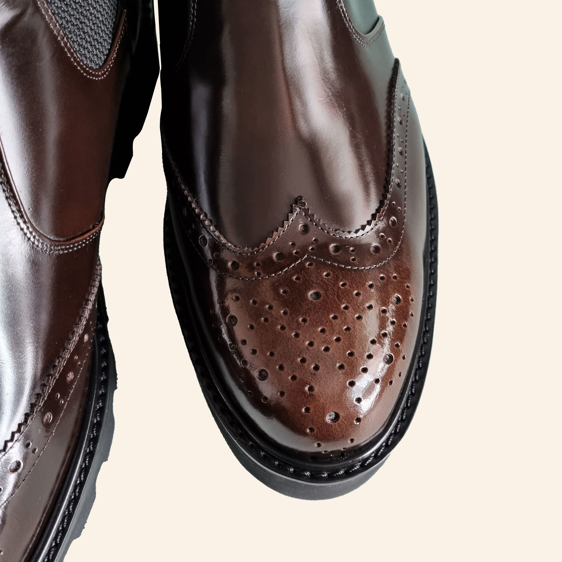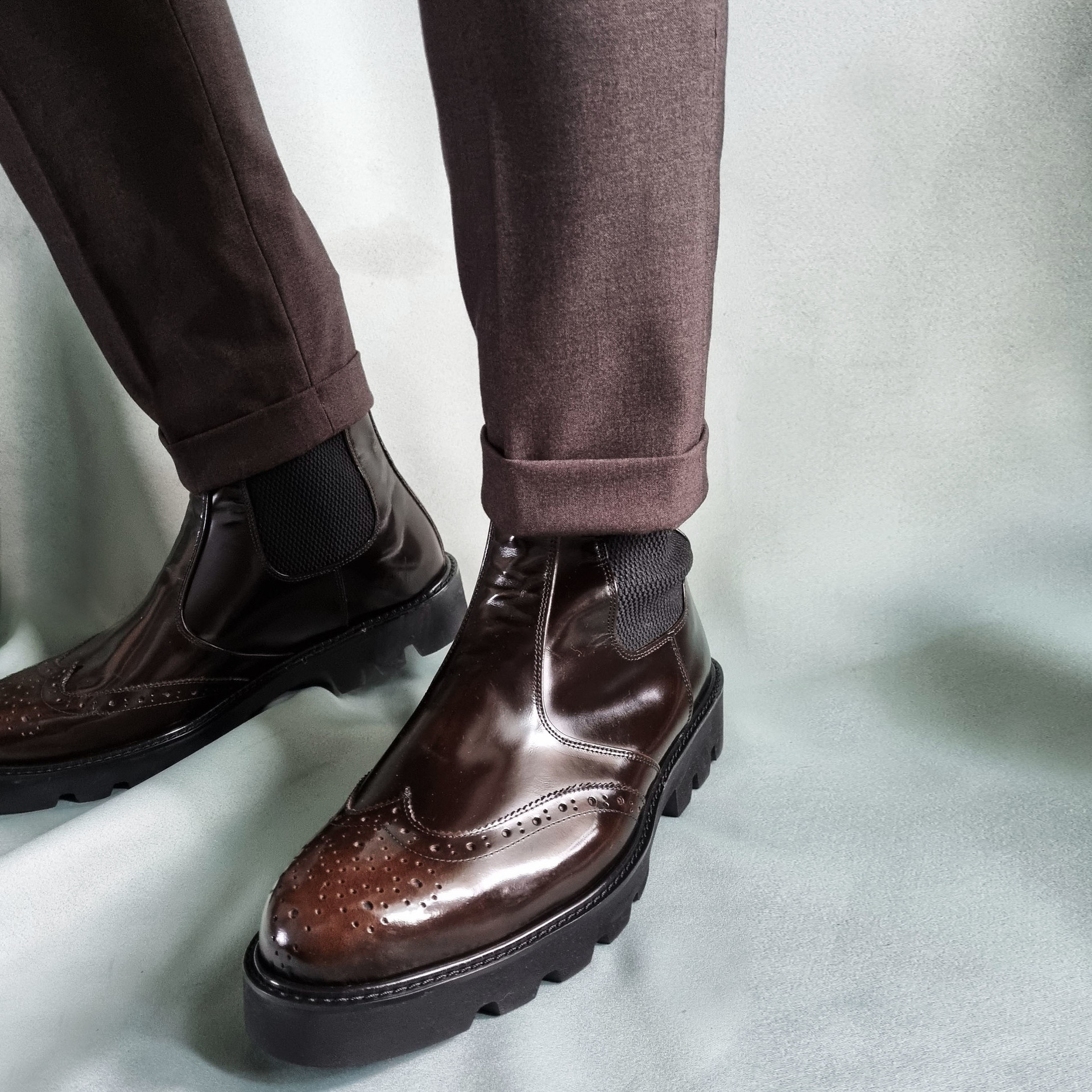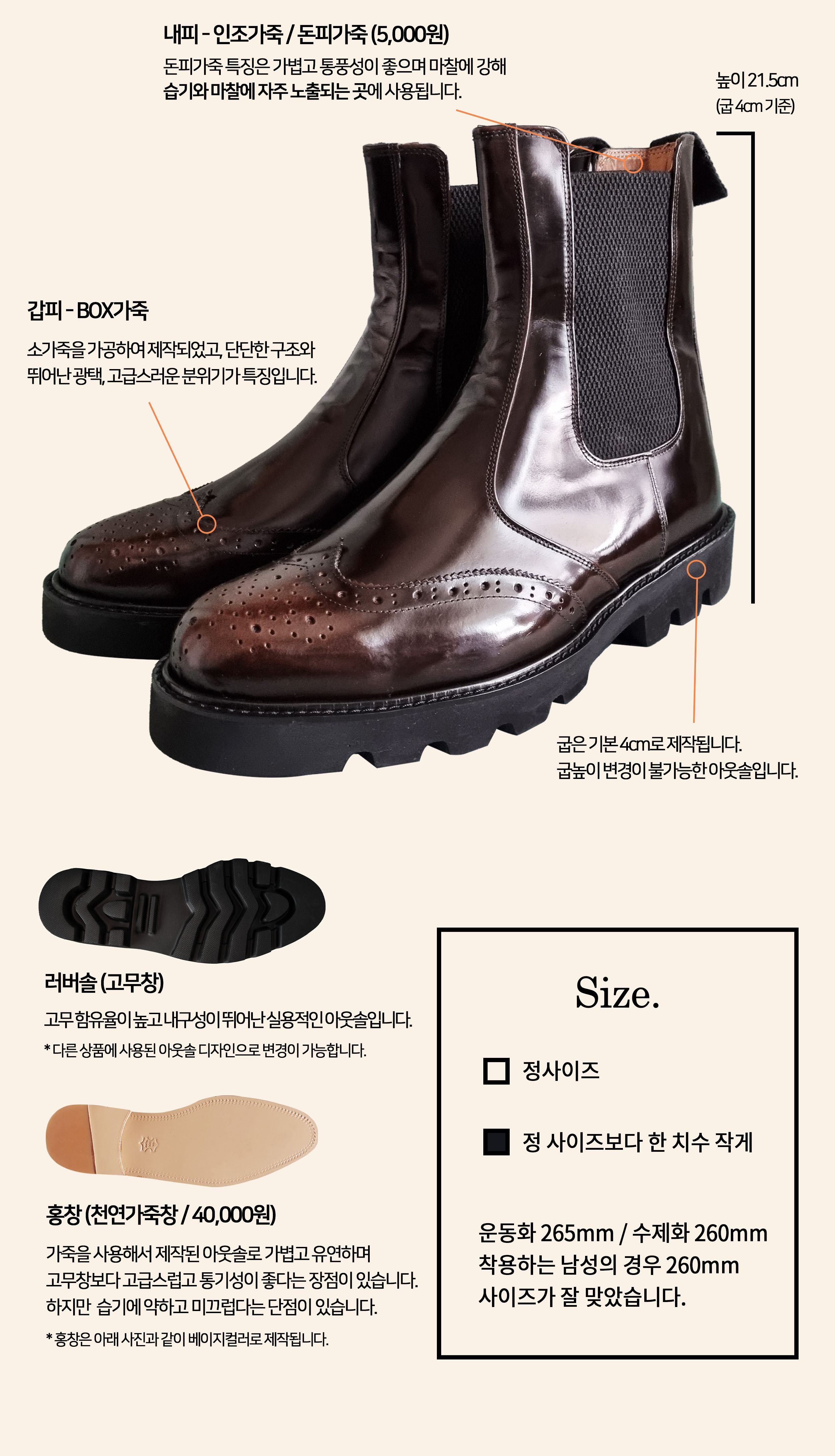 슬림 윙팁 키높이 첼시부츠 C328FL 브라운 소가죽 남성수제화