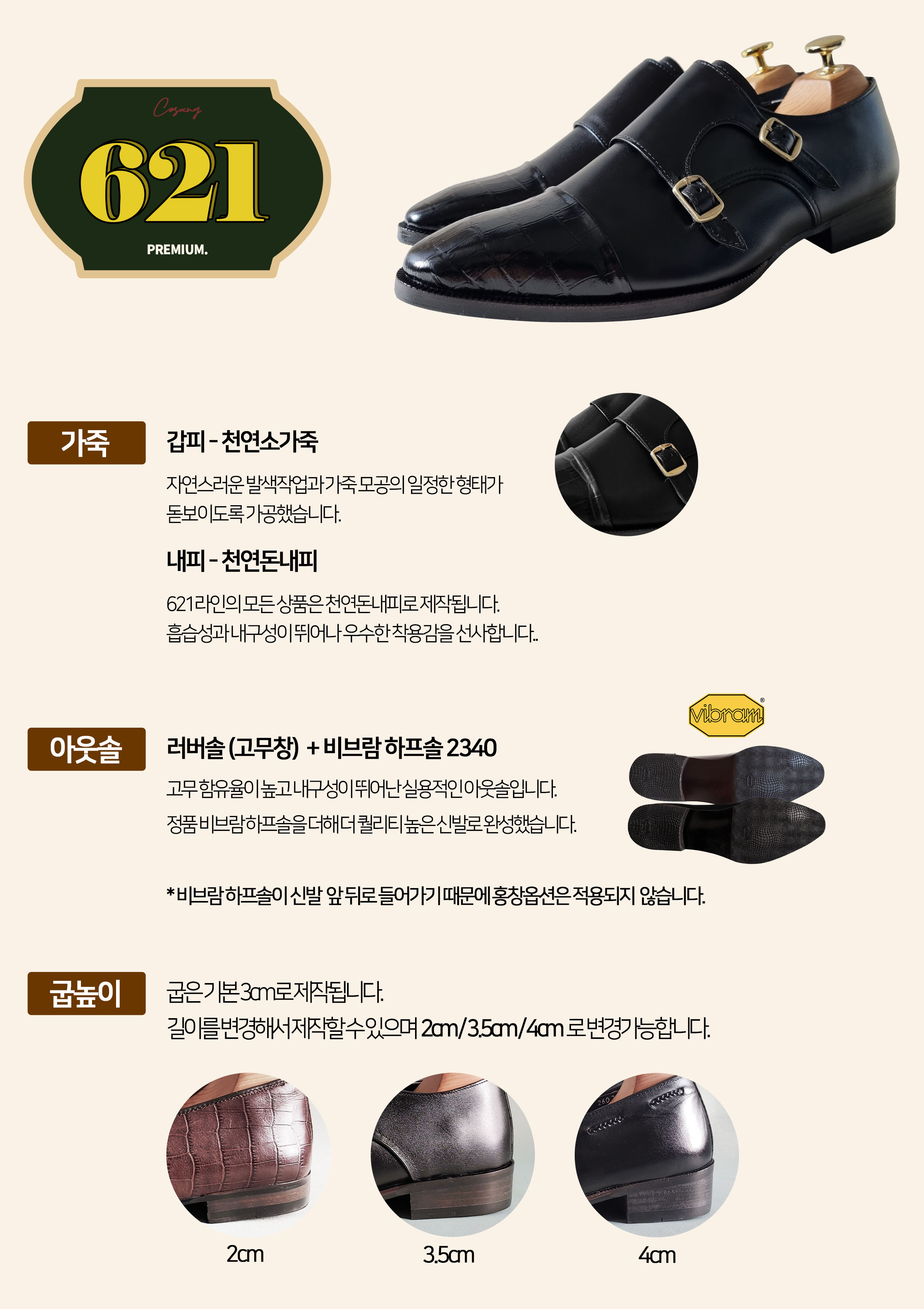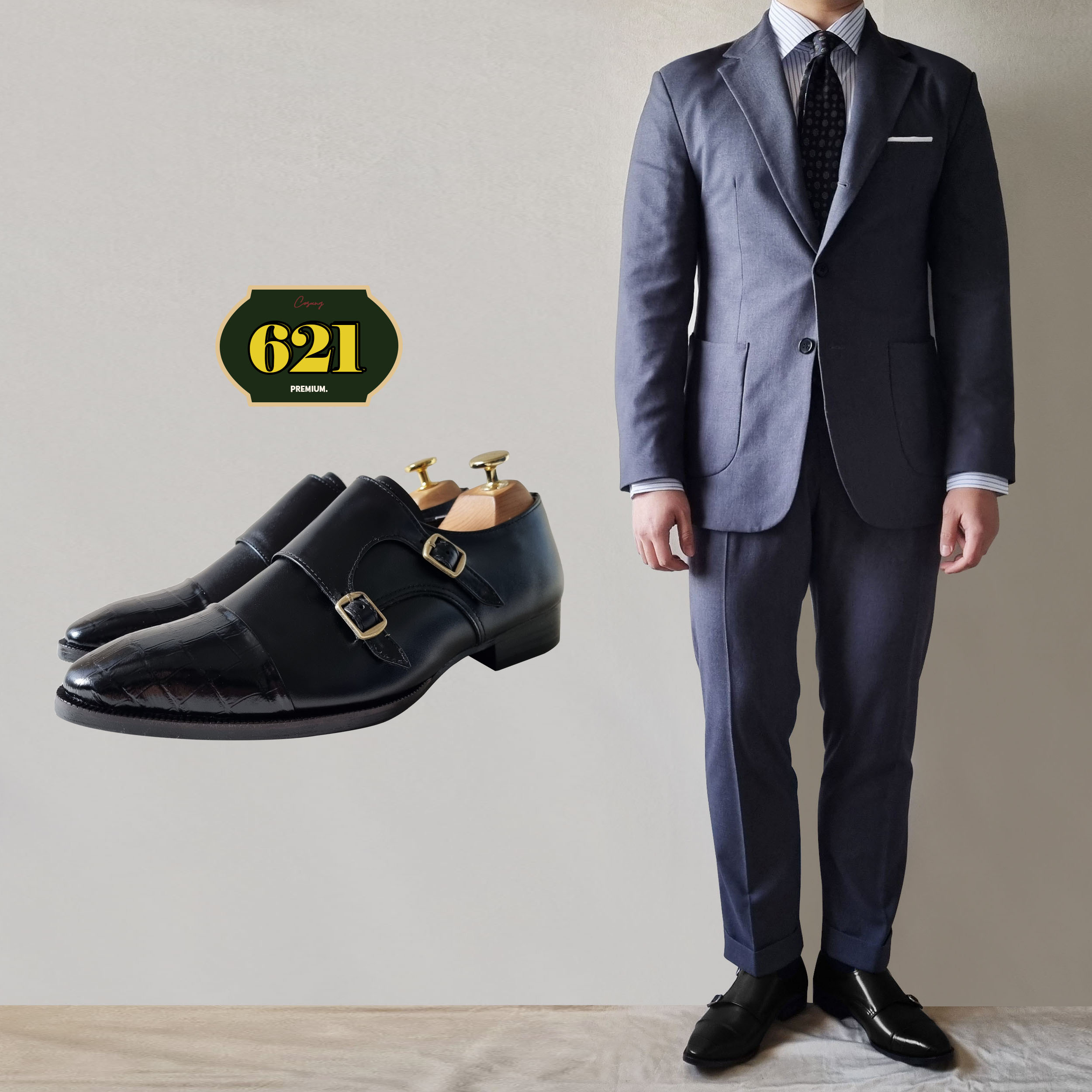 패턴 캡토 더블몽크스트랩 C6253FL 블랙 소가죽 남성수제화