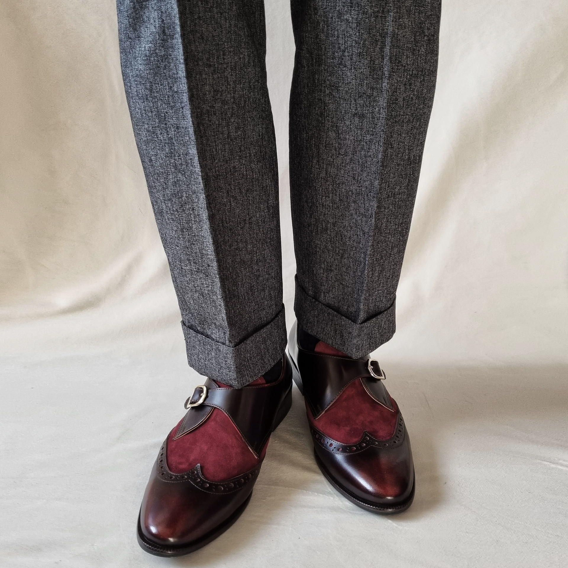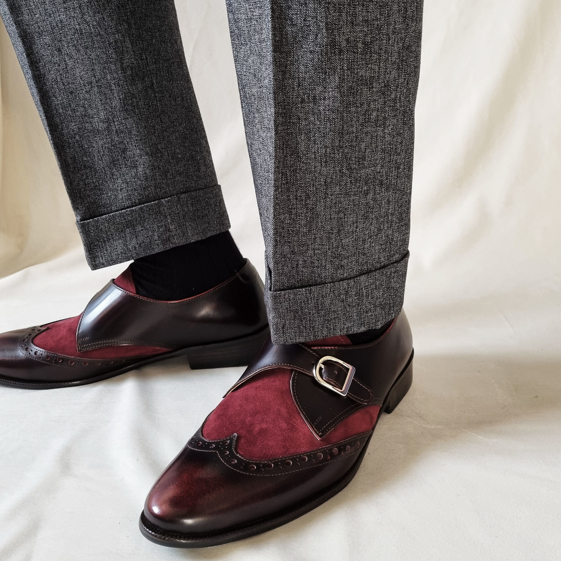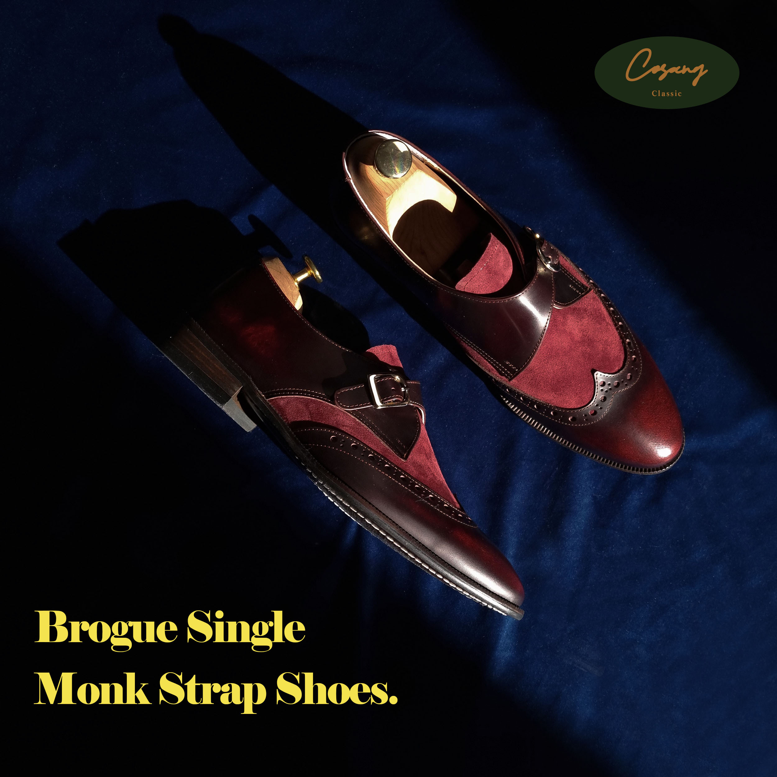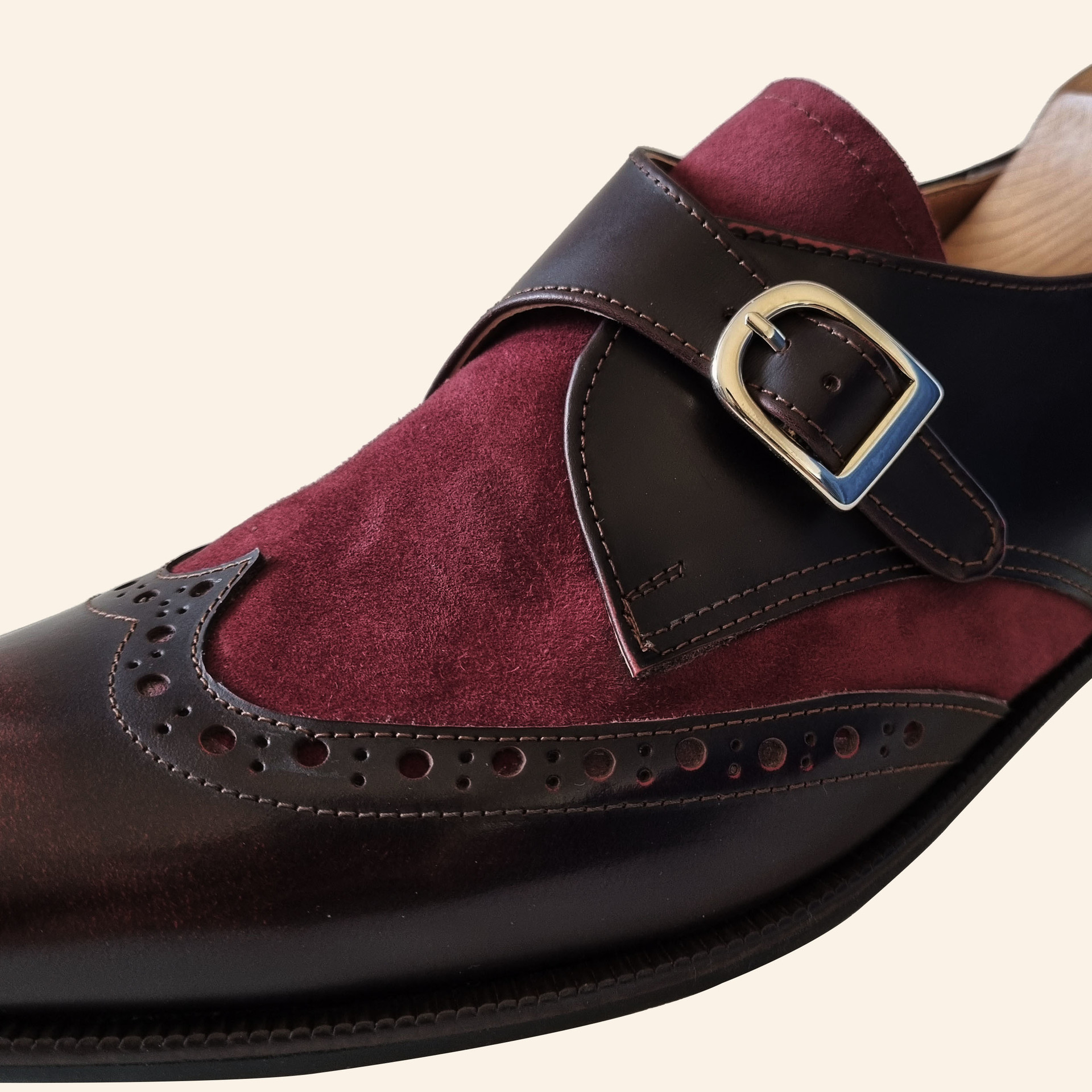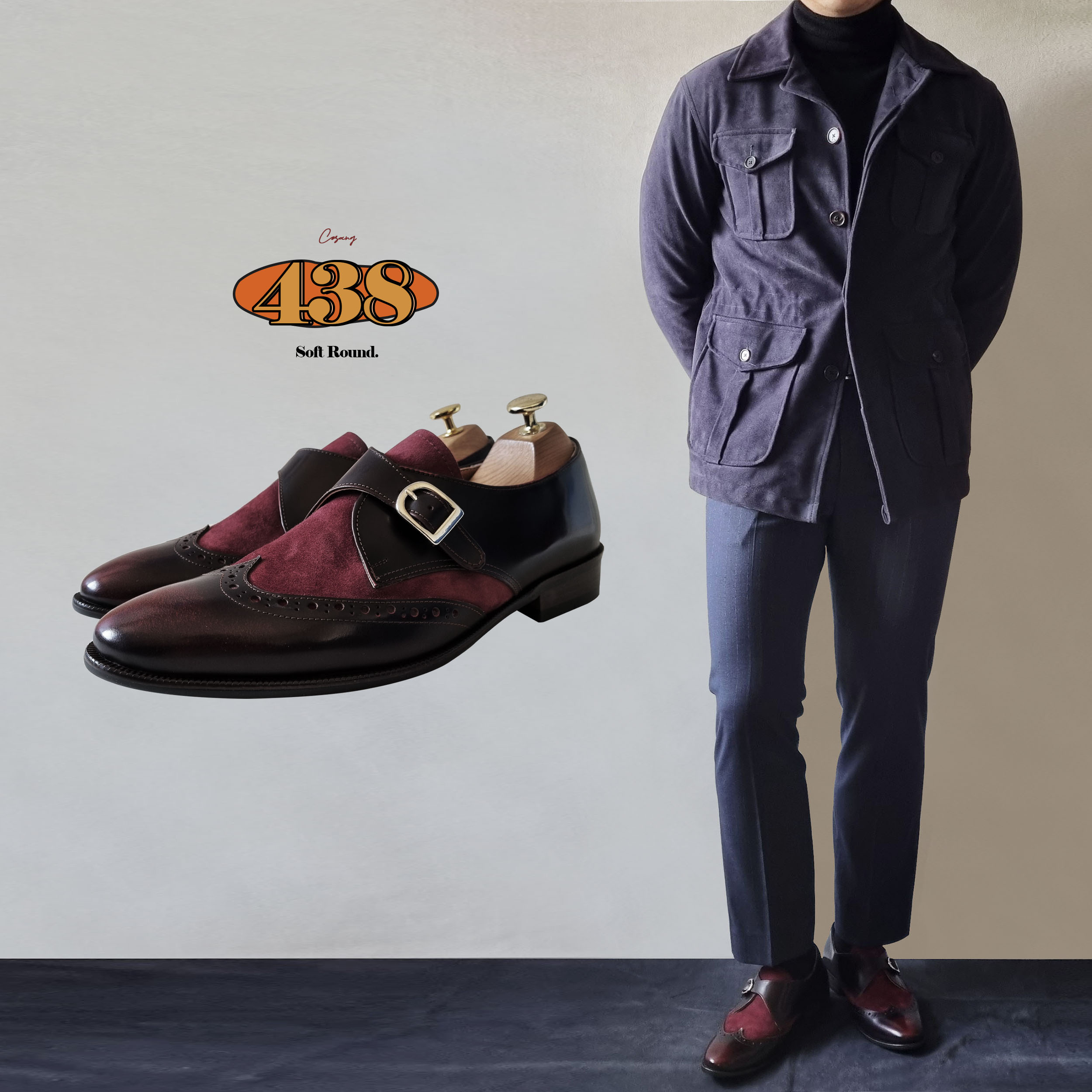 소가죽과 양가죽을 함께 사용해서 완성한 브로그 싱글몽크스트랩