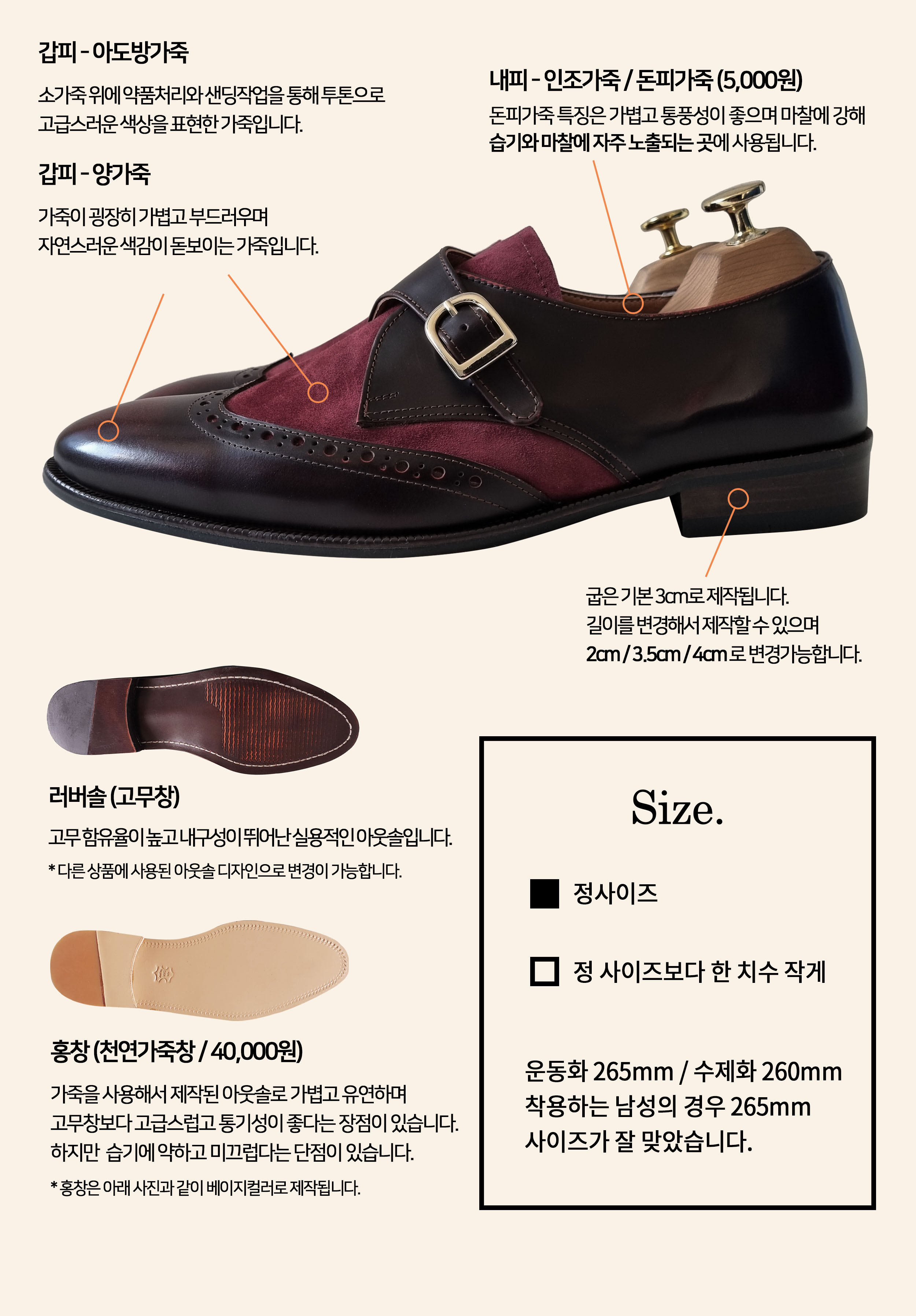 윙팁 브로그 싱글몽크스트랩 C334FL 와인 소가죽 남성수제화