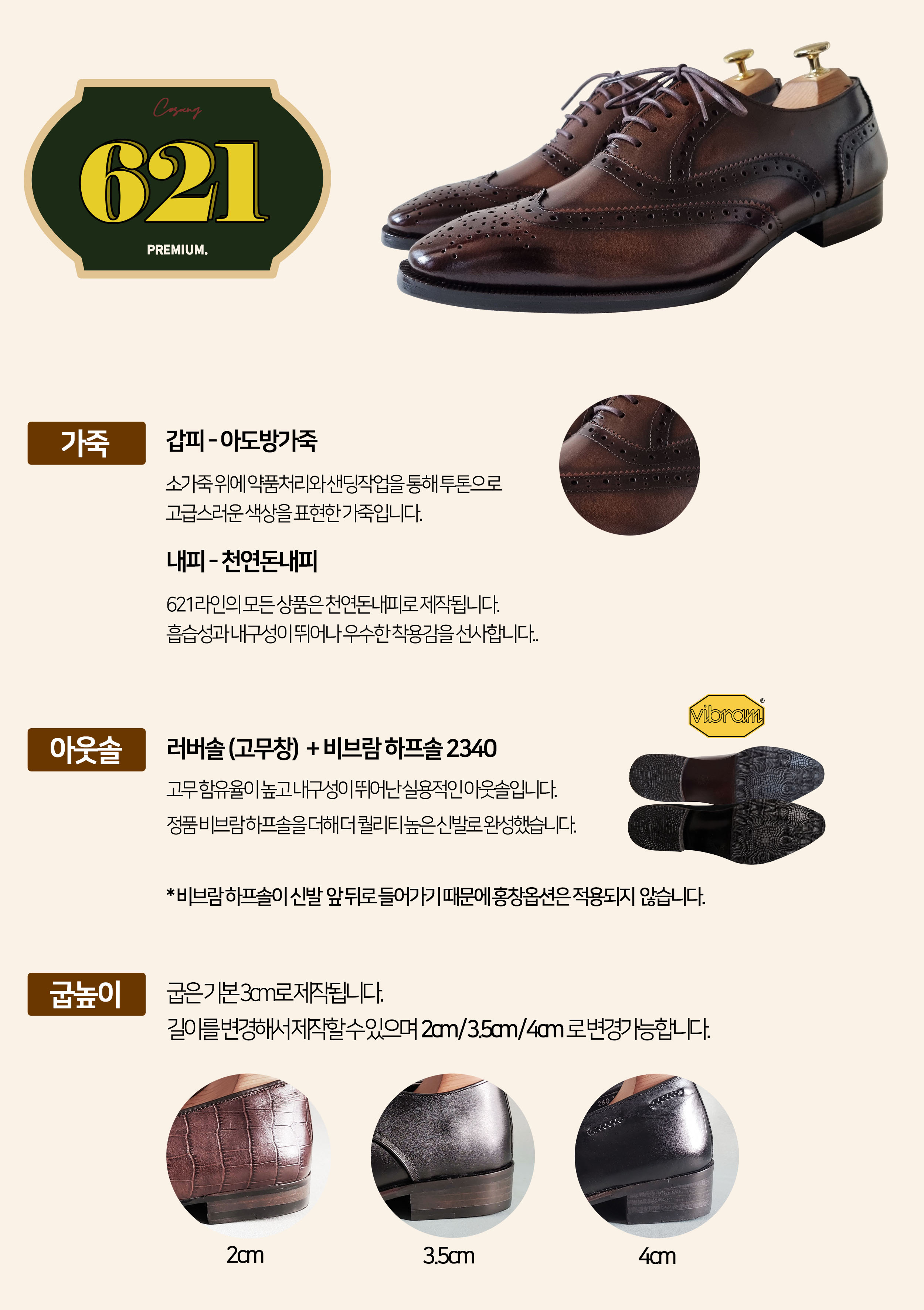 윙팁 옥스퍼드 슈즈 C6273FL 브라운 소가죽 남성수제화